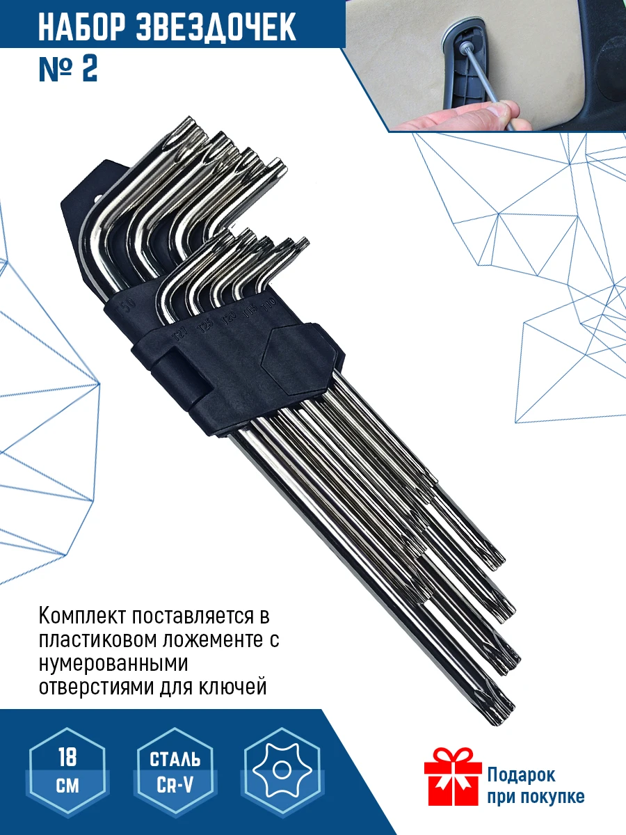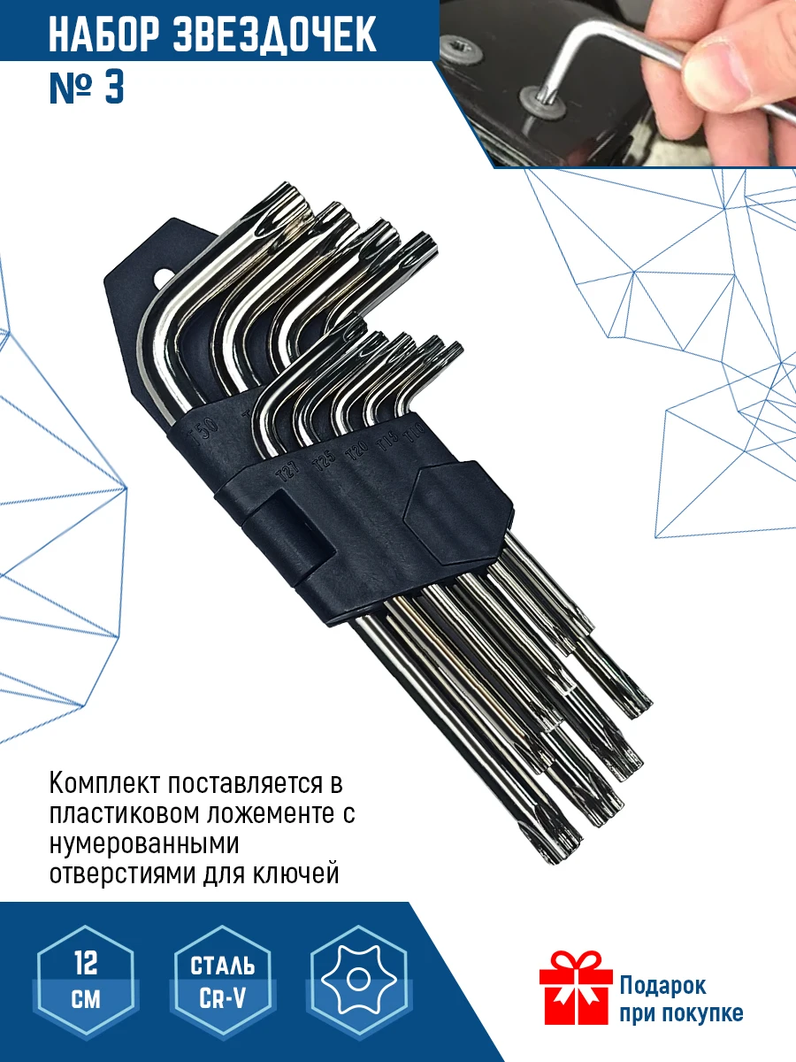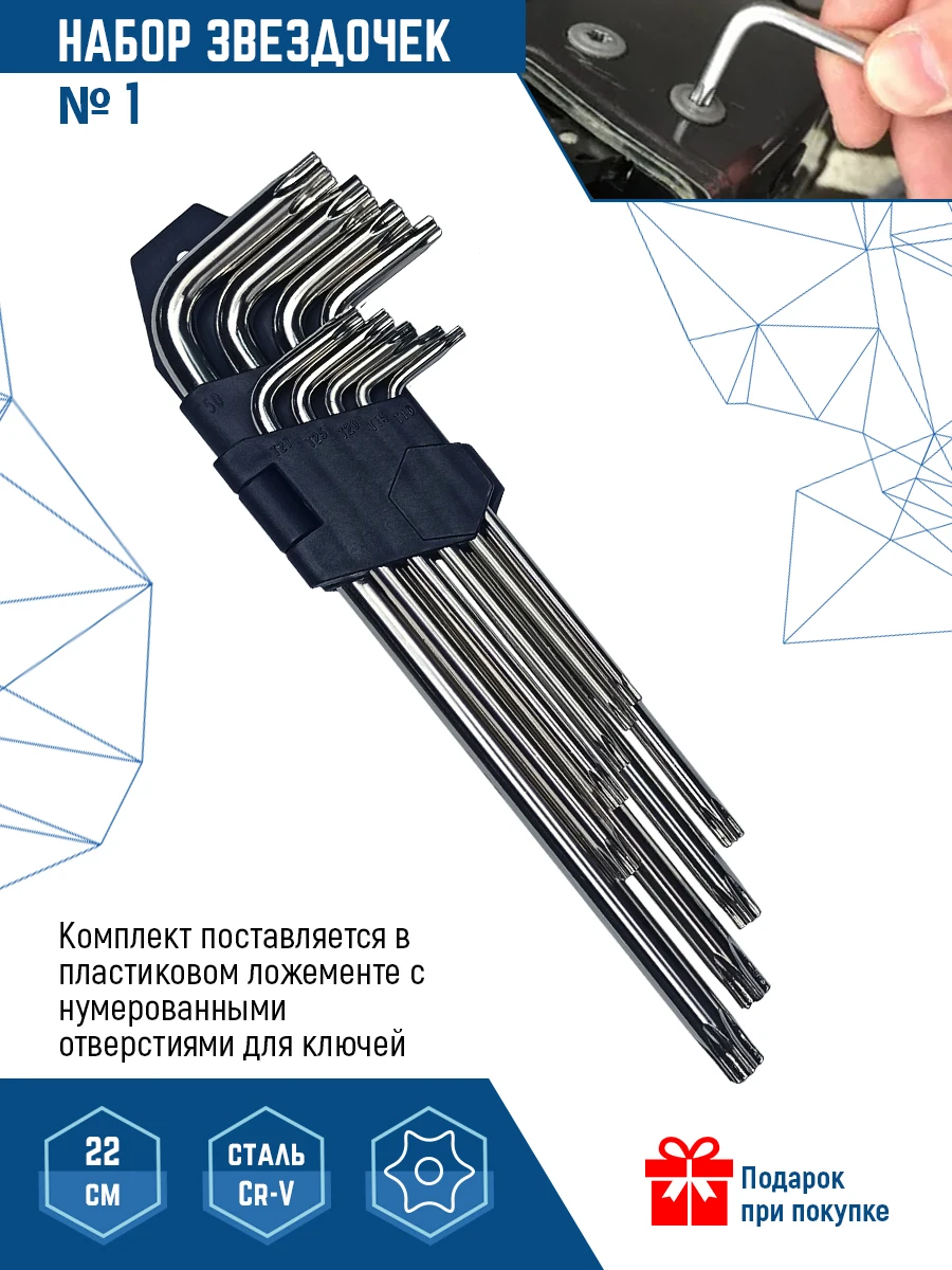 Набор звездочек VertexTools TORX Г-образные ключи 9 шт. для ремонта