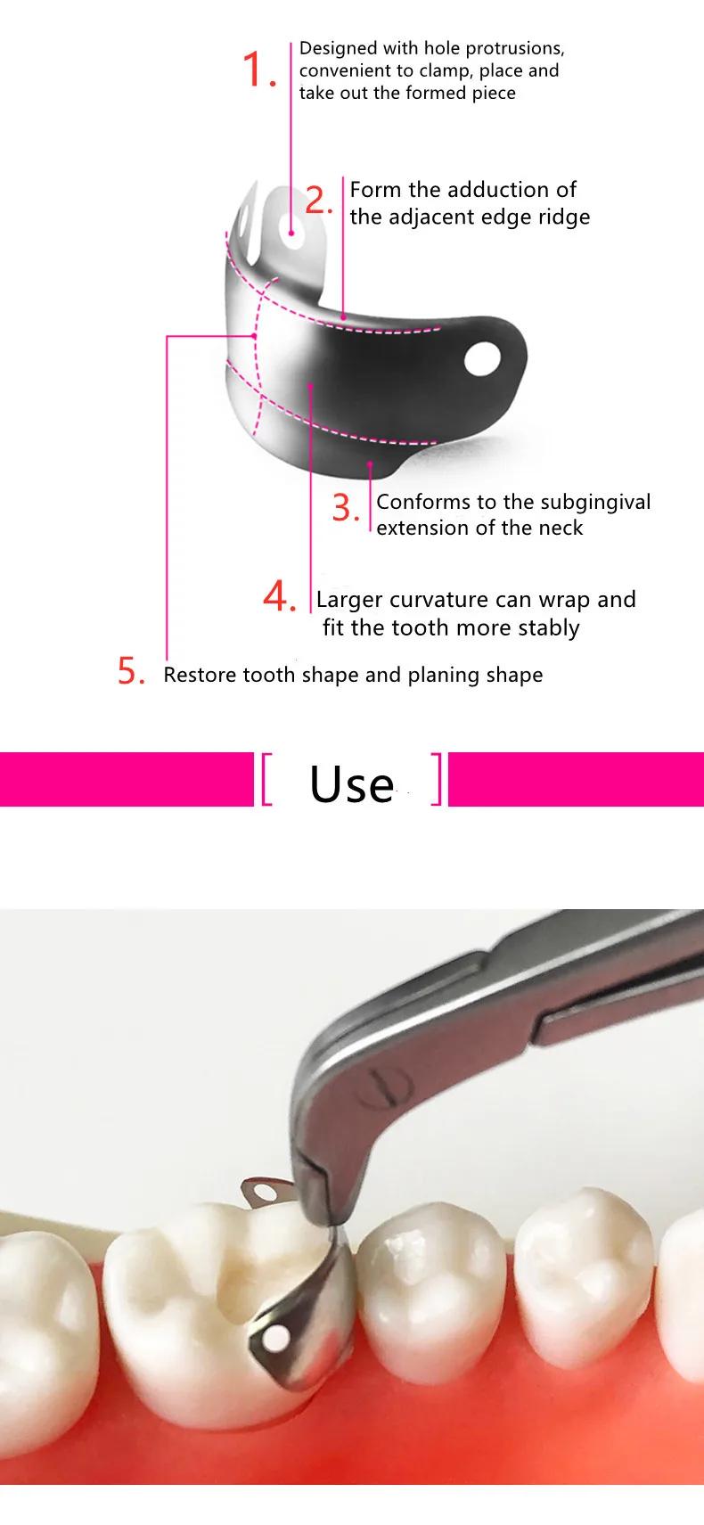 3.Conforms to the subgingival extension of the Tooth neck