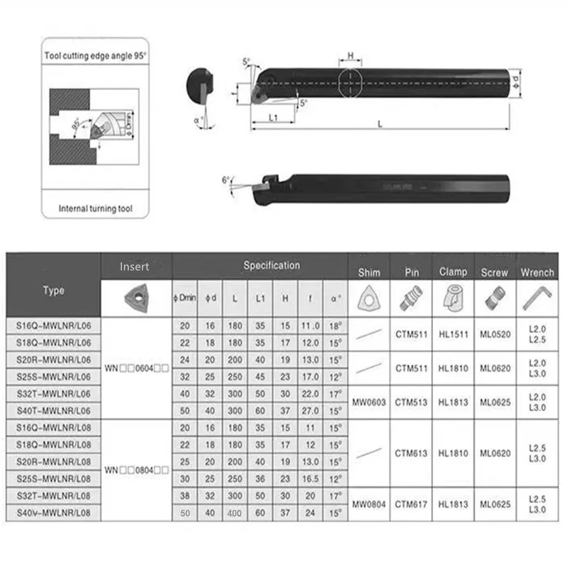 Токарный инструмент держатель S40V-MWLNR08 токарный станок с ЧПУ режущий стержень Внутренний токарный стержень металлический резак
