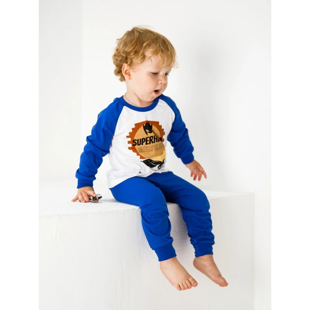 Пижама для детей от бренда Amarobaby из коллекции Superheroes изготовлен из 100% хлопка.