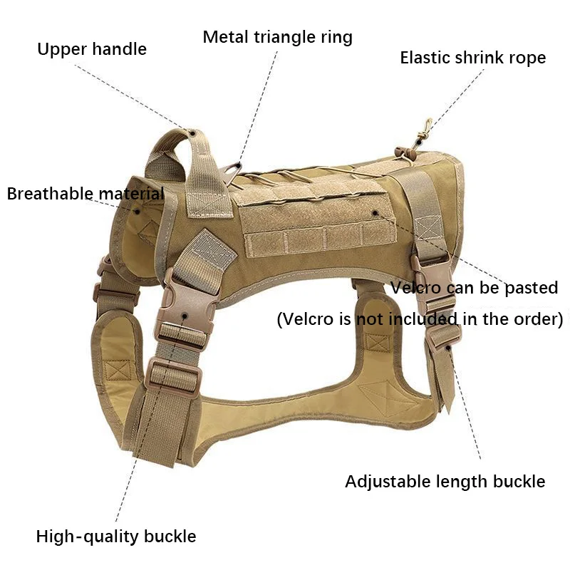 Ремни были разработаны путем размещения 2 отдельных компонентов вместе, предлагаем 4 положения регулируемые (плечо, грудь), легко и свободно настроить правильно, убедитесь, что этот ремень хорошо подходит для вашей собаки, Не тереть так же, как не спасает-устойчивая прочная ручка сшита жесткой и достаточно большой, чтобы быстро и легко захватывать жгут при ходьбе в ворон, также Поднимите свою собаку, когда вы входите/выходите из автомобиля с двойным поводком на зажиме d-образного кольца, один пришит на спине возле шеи собаки для нормальной ходьбы. Другой sewon спереди на груди без какой-либо тянуть MOLLE/УП для переноски-два 2,5 см полоски Molle, пришитые на обе стороны, позвольте вашей собаке переносить снаряжение с помощью PALs/Molle Pouch в тренировках/повседневной ходьбе/приключенческих походах, кроме того, Поддержка крюк d-образное кольцо с застежкой-липучкой Панель --- подача заявки на три 2,5 см полосы петли Панель сшито на оба при формировании MOLLE. Одна квадратная петля, ПРИШИТАЯ на переднюю грудь, вы можете прикрепить много заплаток для идентификации вашей собаки