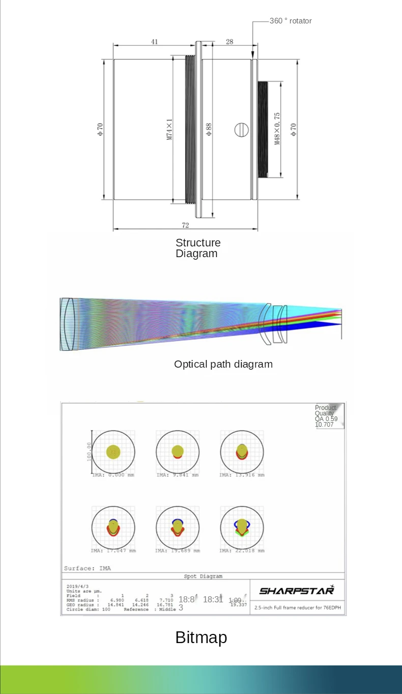 · Принять triplet цель имеет один элемент ультра-низкой дисперсии ED стекла, получить исключительные визуальные и астрофотографические характеристики.