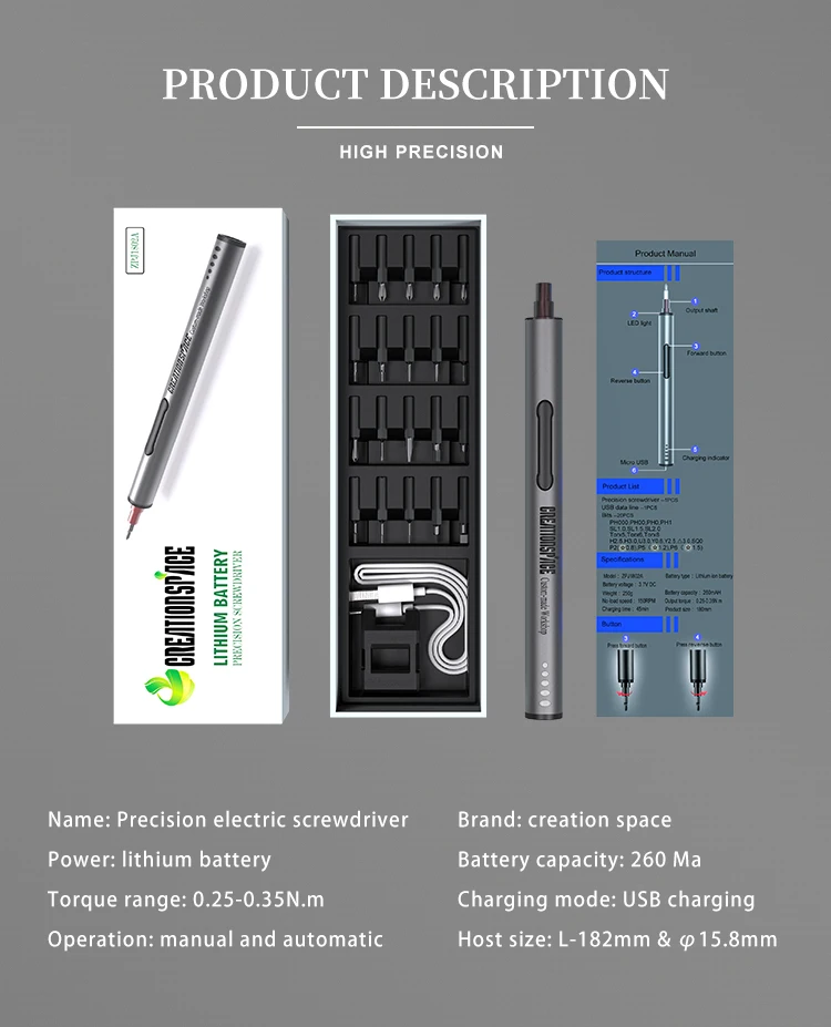 Электрическая отвертка набор аккумуляторных отверток Набор многопозиционных USB перезаряжаемых прецизионных инструментов