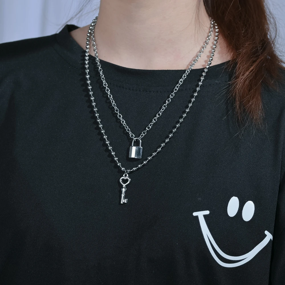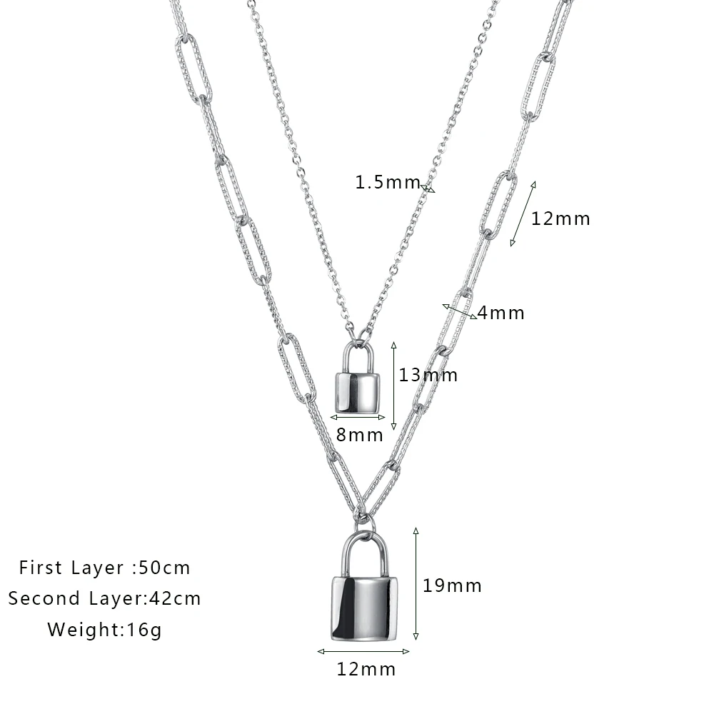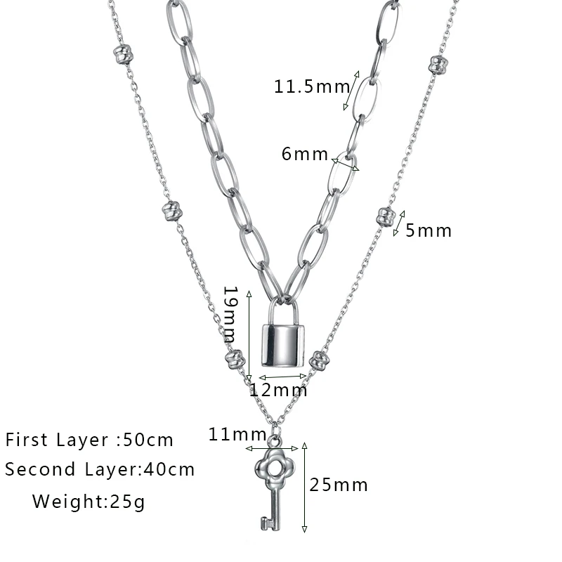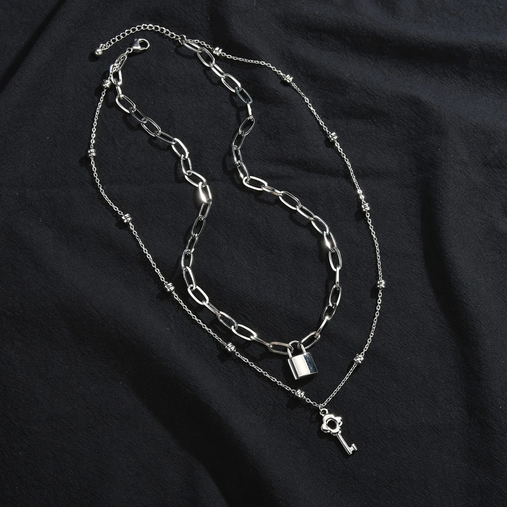 Sifisrri Fashion Double Layer Lock & Key Pendant Stainless Steel Necklace for Women Couples Valentine's Day Jewelry Gifts Wholesale and Dropshipping