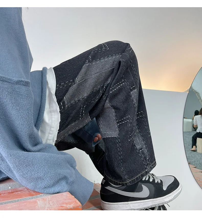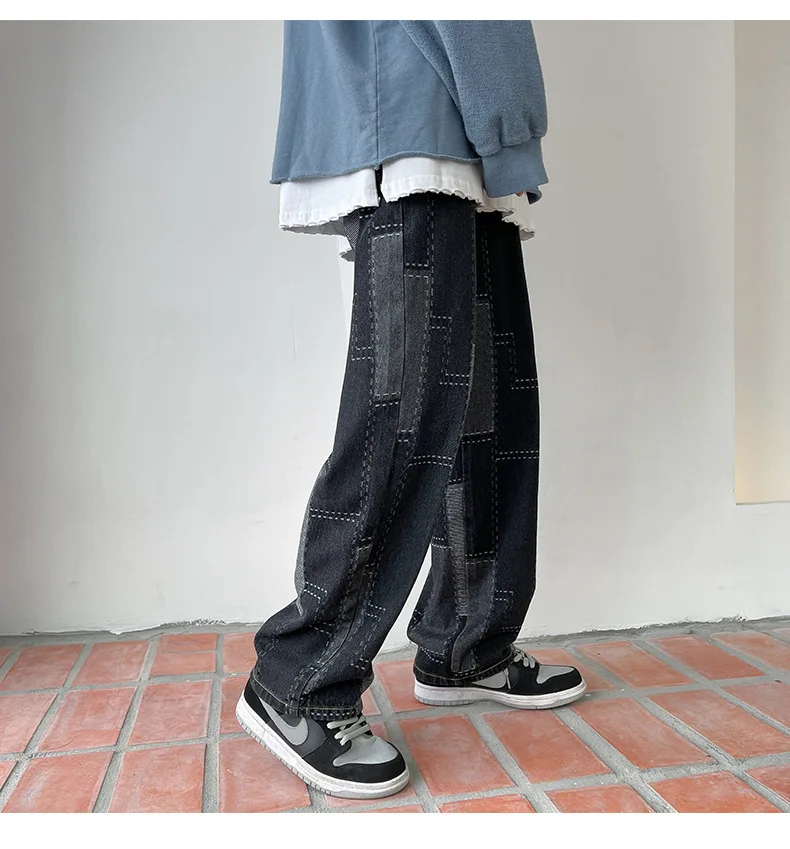 Джинсы в стиле Харадзюку для мужчин и женщин прямые повседневные брюки из денима