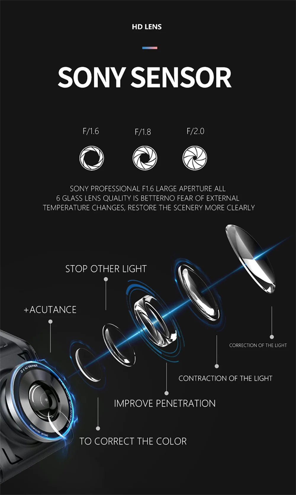 С революционной супер Ночное видение Технология, Автомобильный видеорегистратор может захватывать четкое видео и фотографии даже в условиях низкой светильник ночное время суток. F/1,8 крупнейших диафрагма в наличии + 6-Стекло Широкий формат объектив с фирменными фокусное Длина объектива дает вам более четкие мелких деталей