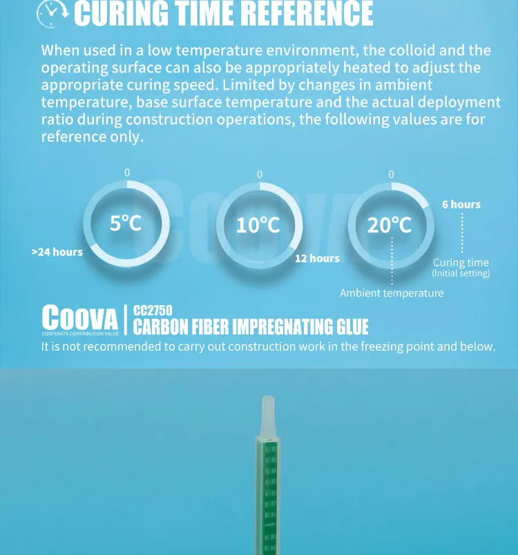 При использовании в условиях низкой температуры коллоид и рабочая поверхность также могут быть соответствующим образом нагреваются для регулировки соответствующей скорости отверждения. Ограниченные изменением температуры окружающей среды, базовой температуры поверхности и фактическим коэффициентом дислокации во время строительных работ, следующие значения приведены только для справки.