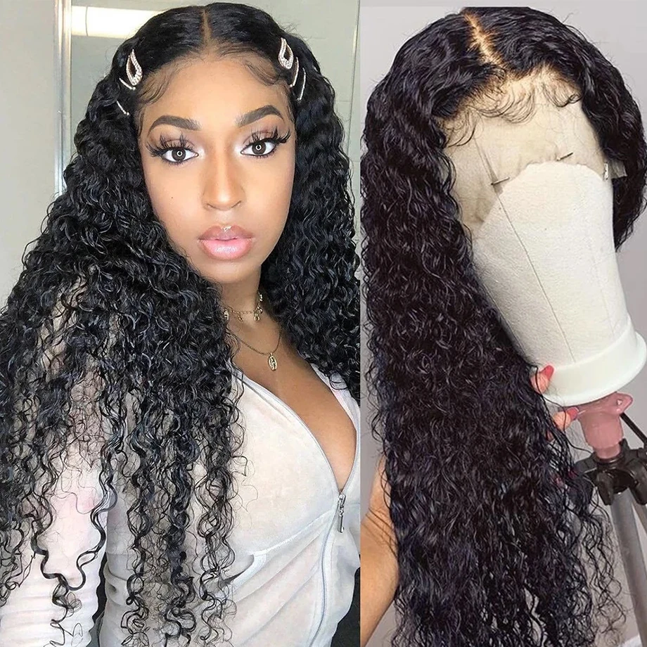Парик с волнистым кружевом спередиПарик из вьющихся человеческих волосЧерный парик из человеческих волосT часть бразильскаяПарики для женских человеческих волос