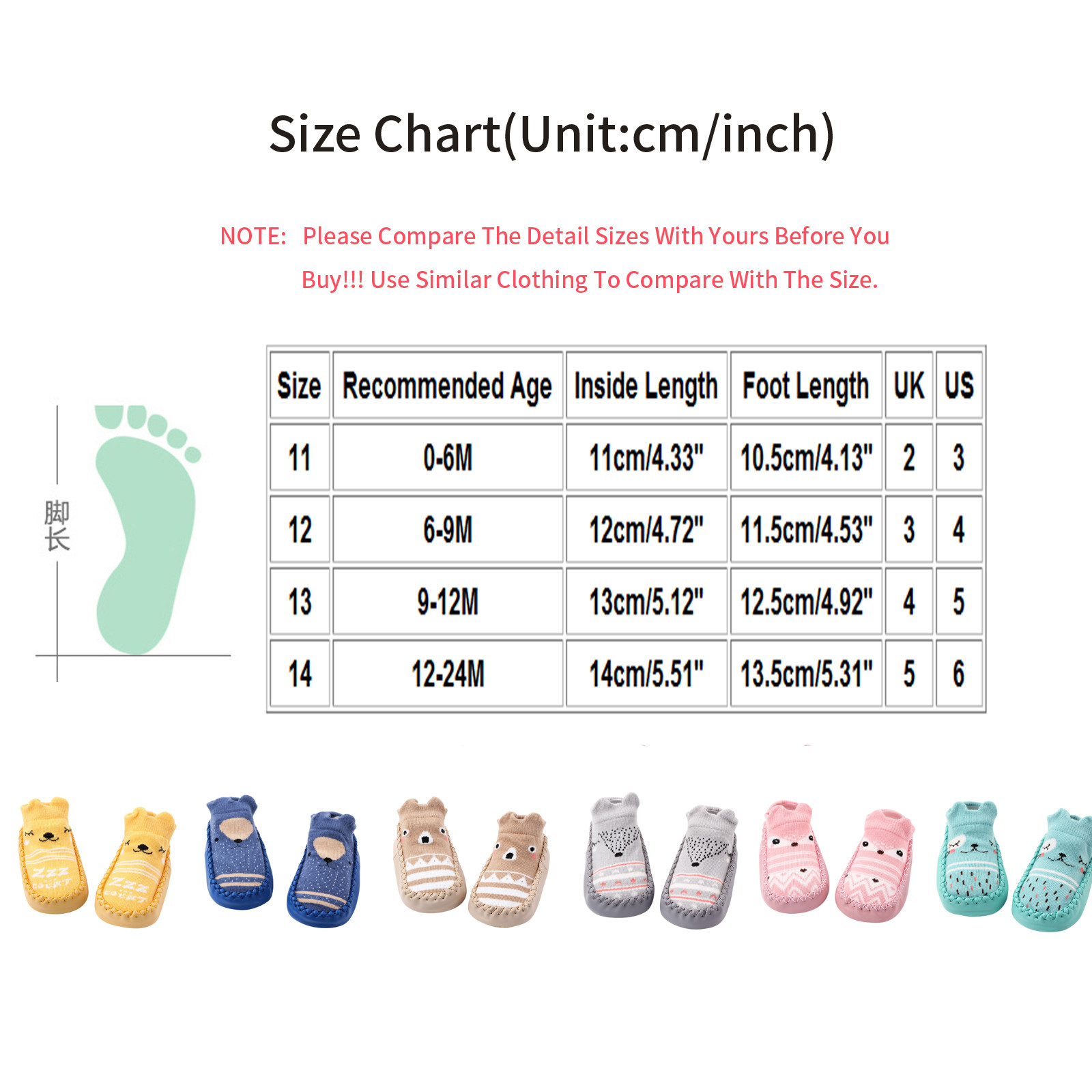 | Размеры | Рекомендуемый возраст | Внутренняя длина | Длина стопы | Великобритания | США |
