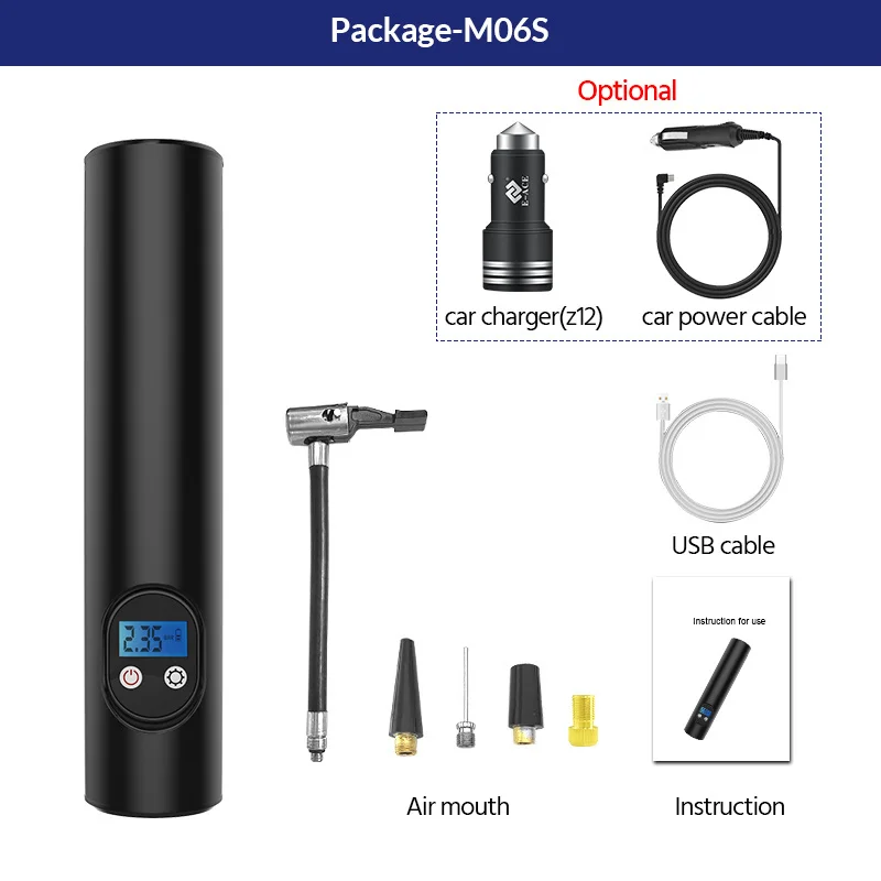 Предварительно Установите требуемое давление в шинах, полное автоматического останова, не нужно всегда смотреть на давление в шинах, также можно вручную сделать паузу, немедленно безопасный контроль давления. Газовое сопло вкручивается на клапан автомобиля, пневматический насос под напряжением может обнаруживать давление в шинах.