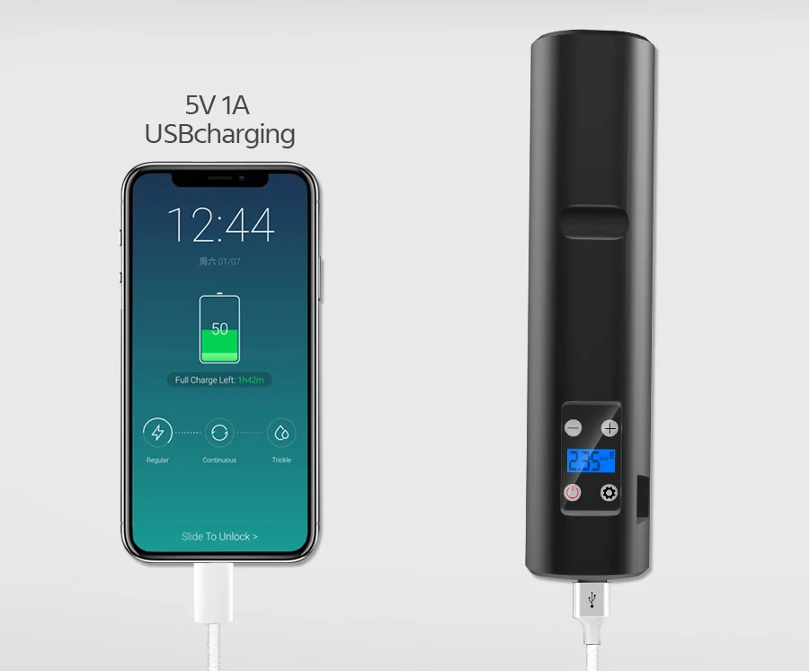 Воздушный насос через USB кабель для зарядки, когда дисплей питания красный от имени необходимости зарядки, дисплей зеленый от имени полного.