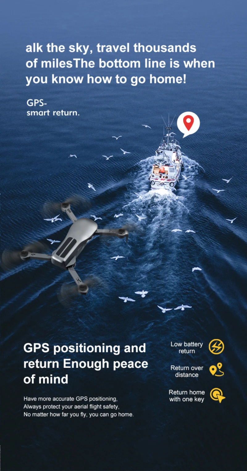 Интеллектуальное позиционирование Wifi GPS, Глобальная навигационная спутниковая система (GPS) применяется для беспилотных летательных аппаратов (БПЛА), и спутниковые сигналы автоматически передаются, так что возврат одной кнопкой, возврат при низкой мощности и возврат на большое расстояние могут быть легко реализованы, и БПЛА не будут бояться быть потеряны независимо от того, как далеко он летит.