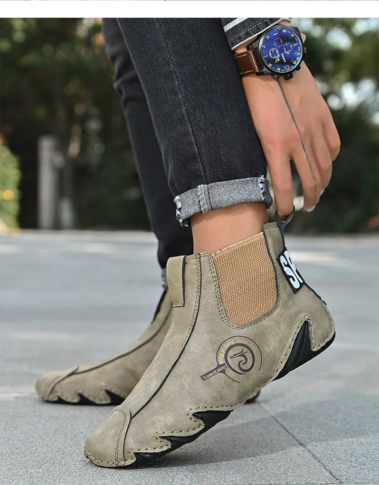 Мужские кожаные ботинки SERENE зимние теплые водонепроницаемые ботильоны для