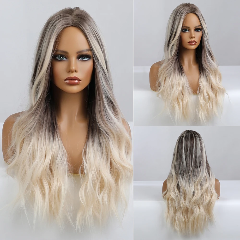 Длинный волнистый синтетический парик с челкой для женщин светильник ые светлые