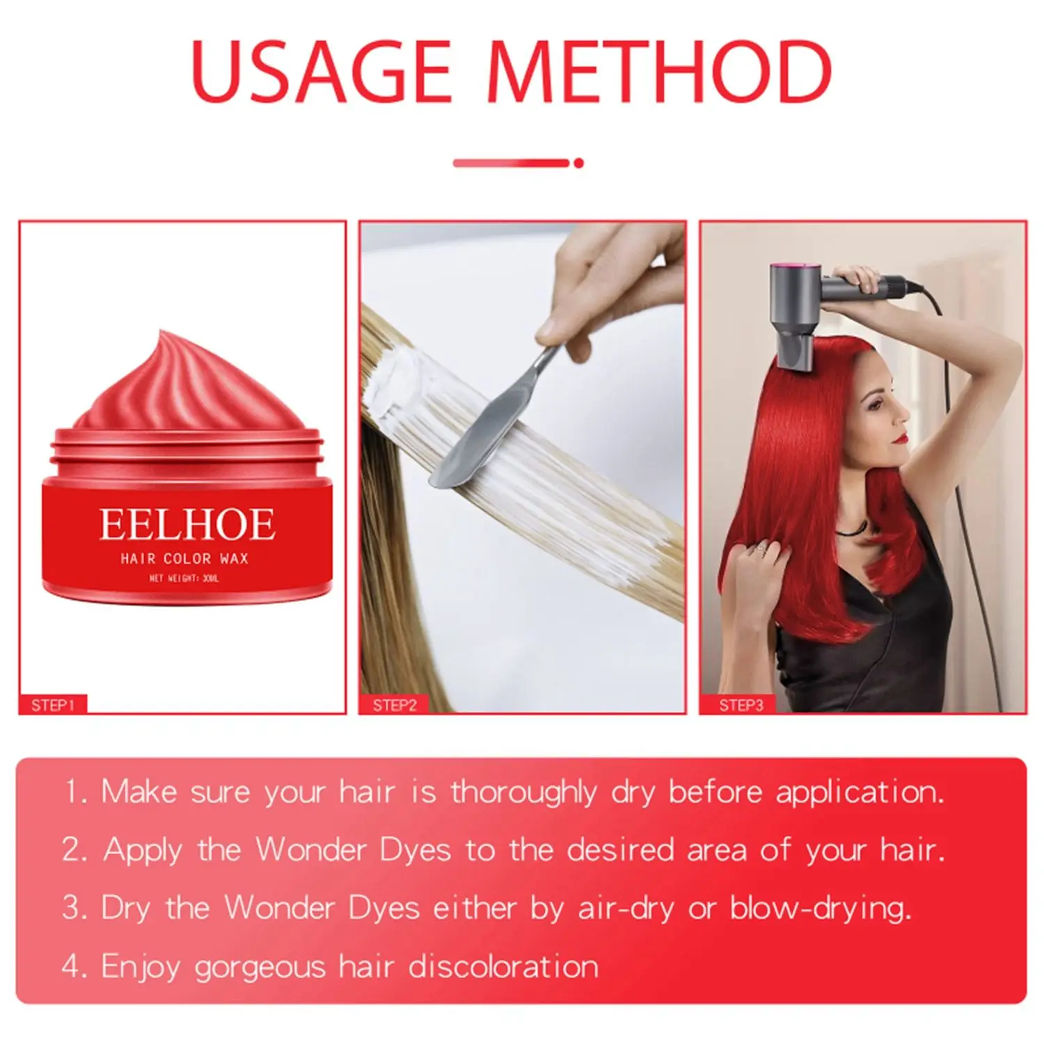 1. Перед нанесением убедитесь, что волосы тщательно высыхают.