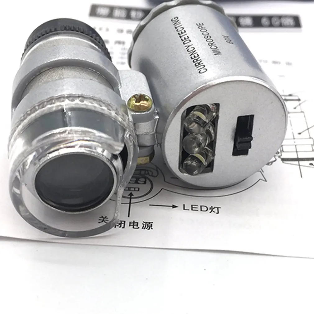 Новый 60X микроскоп с светодиодный светильник портативный карманный лупа увеличительное стекло Фиолетовый поддельный светильник легко носить с собой