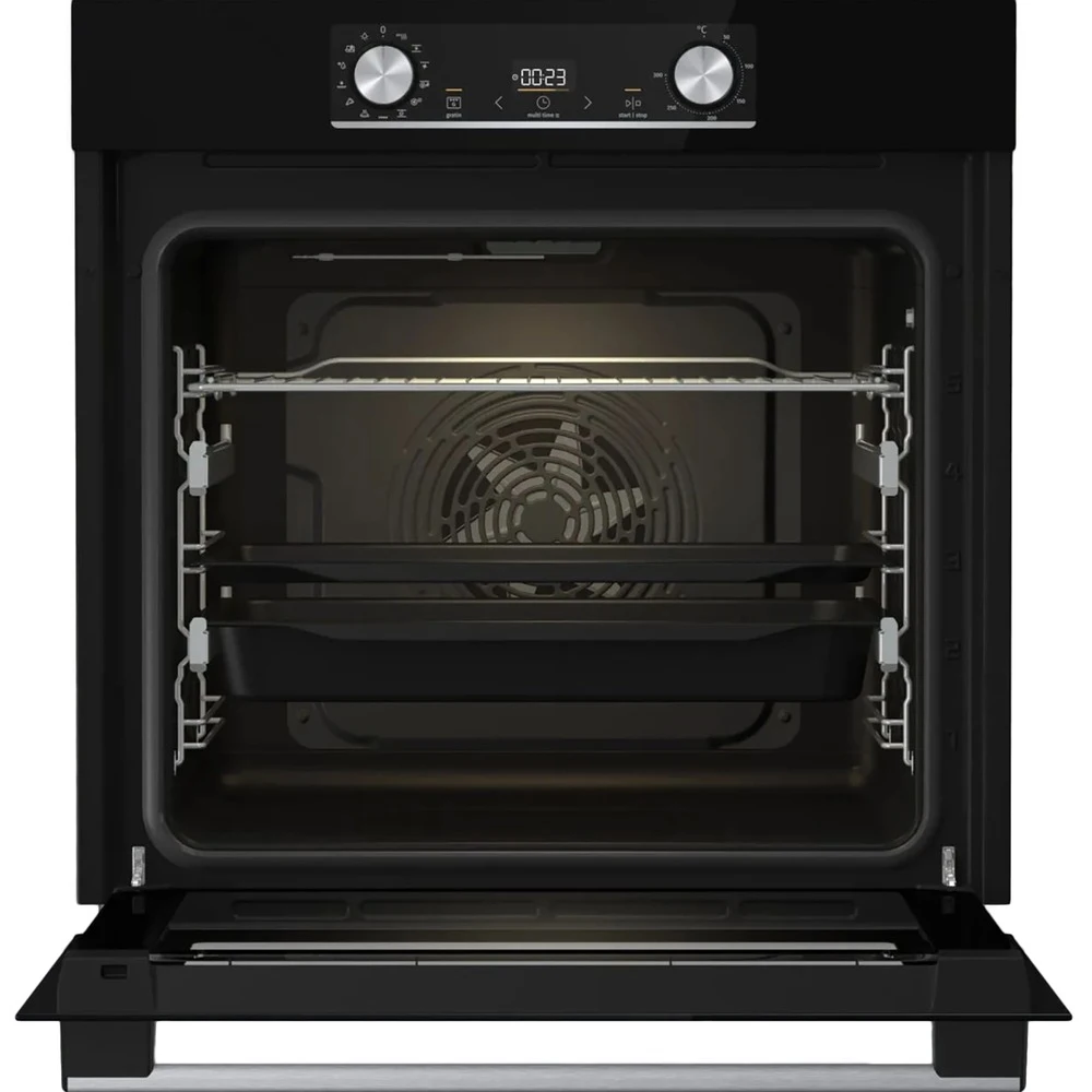 - Режимы работы: классический нагрев с вентиляцией, большой гриль, большой гриль с вентиляцией, нижний и верхний нагрев с паром, горячий воздух, интенсивная выпечка, быстрый разогрев FastPreheat, медленное выпекание GentleBake, выпечка замороженных продуктов, пицца, размораживание, AquaClean