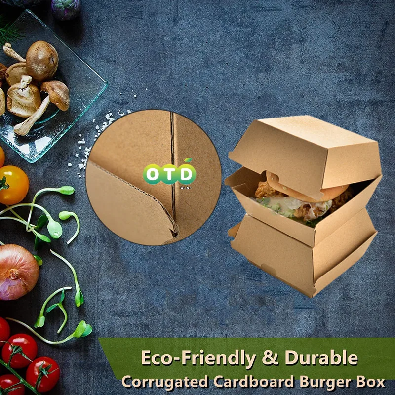 20 шт/50 шт Одноразовые крафт-и гофрированные бумажные контейнеры для еды, коробка для гамбургера, коробка для вылета торта