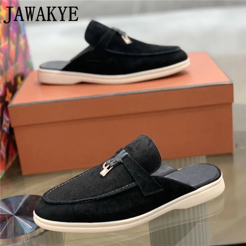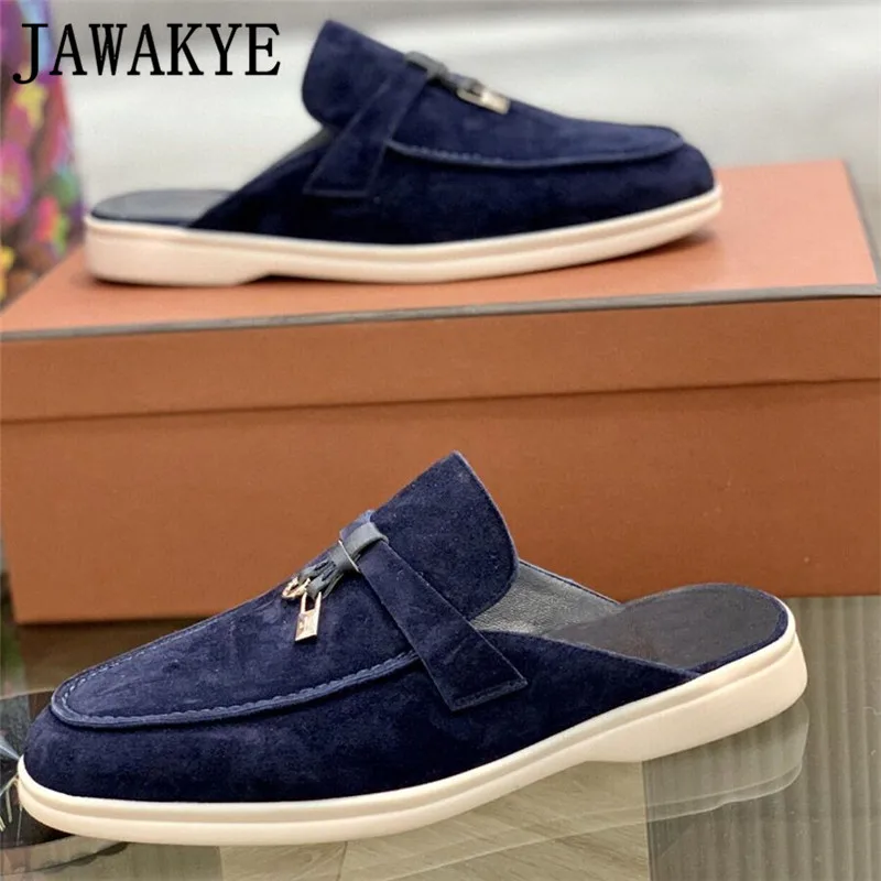 Высококачественные Замшевые мужские тапочки на плоской подошве с круглым носком; Повседневные официальные лоферы с кисточками и металлической подвеской; Дизайнерская обувь на плоской подошве