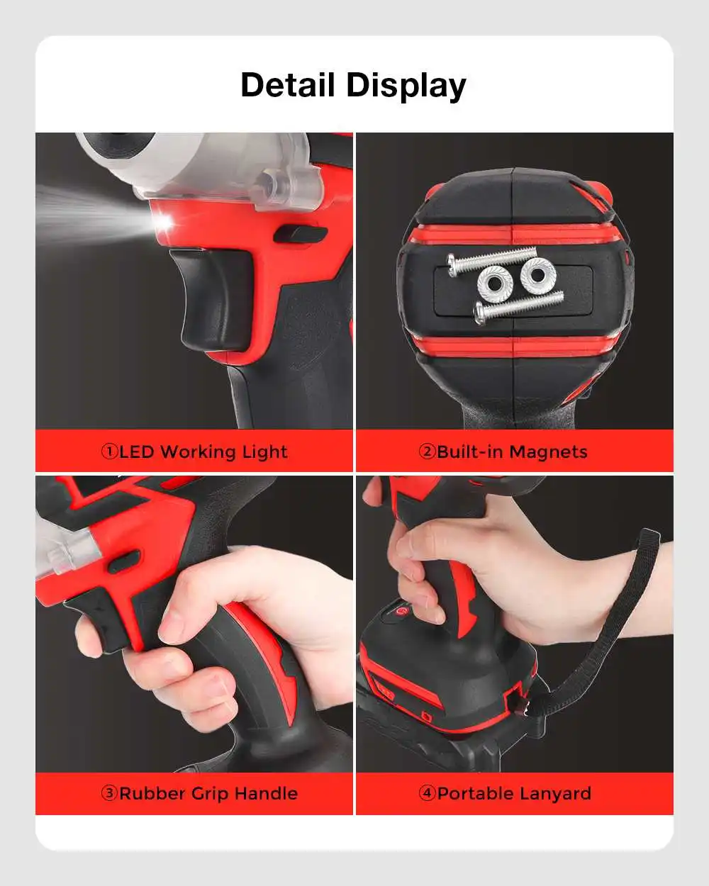 ● W/ LED Working Light and Built-in Magnets