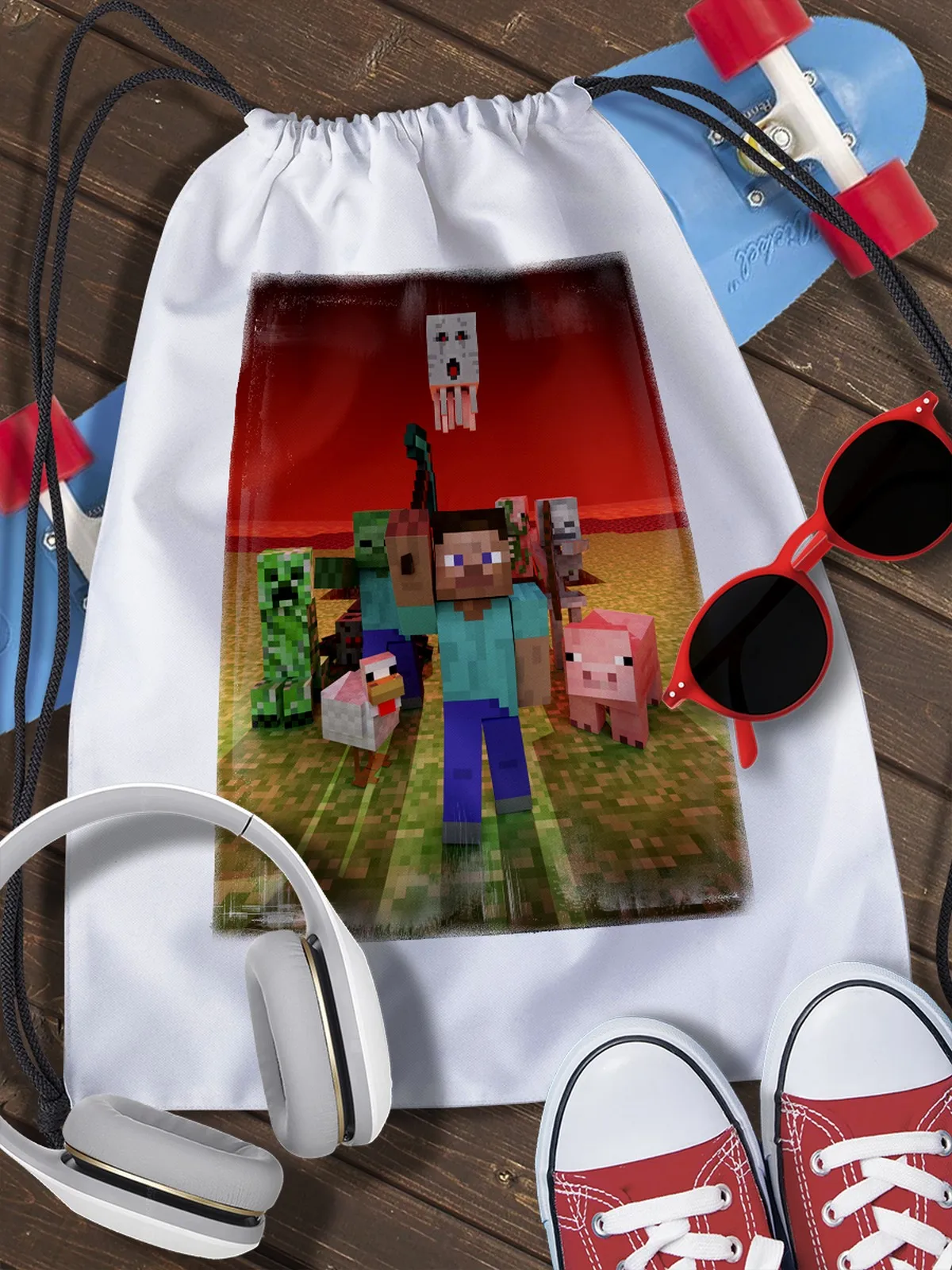 Сумка мешок для обуви майнкрафт (Minecraft пиксили блоки крипер стив Enderman Редстоун) -