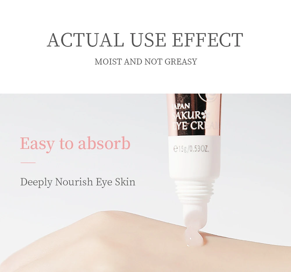 [Эффект] этот крем для глаз содержит эссенцию сакуры из Японии, которая увлажняет глаза и помогает удалить тонкие линии. Он использует драгоценный никотинамид для осветления кожи и уменьшения темных кругов вокруг глаз.