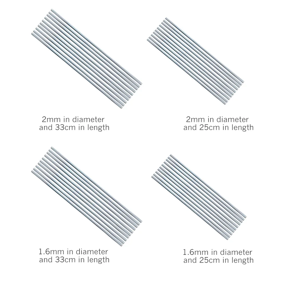 Specification:Color: silverStyle: 1.6mm, 2.0mmMaterial: aluminum welding wireQuantity: 10Length: 33cm、25cm Notice:1.Please allow 1-3mm error due to manual measurement. pls make sure you do not mind before your purchase.2.The colors may have different as the difference display,pls understand.3.Please leaving a message before you give the bad feedback, if the products have some problems.
