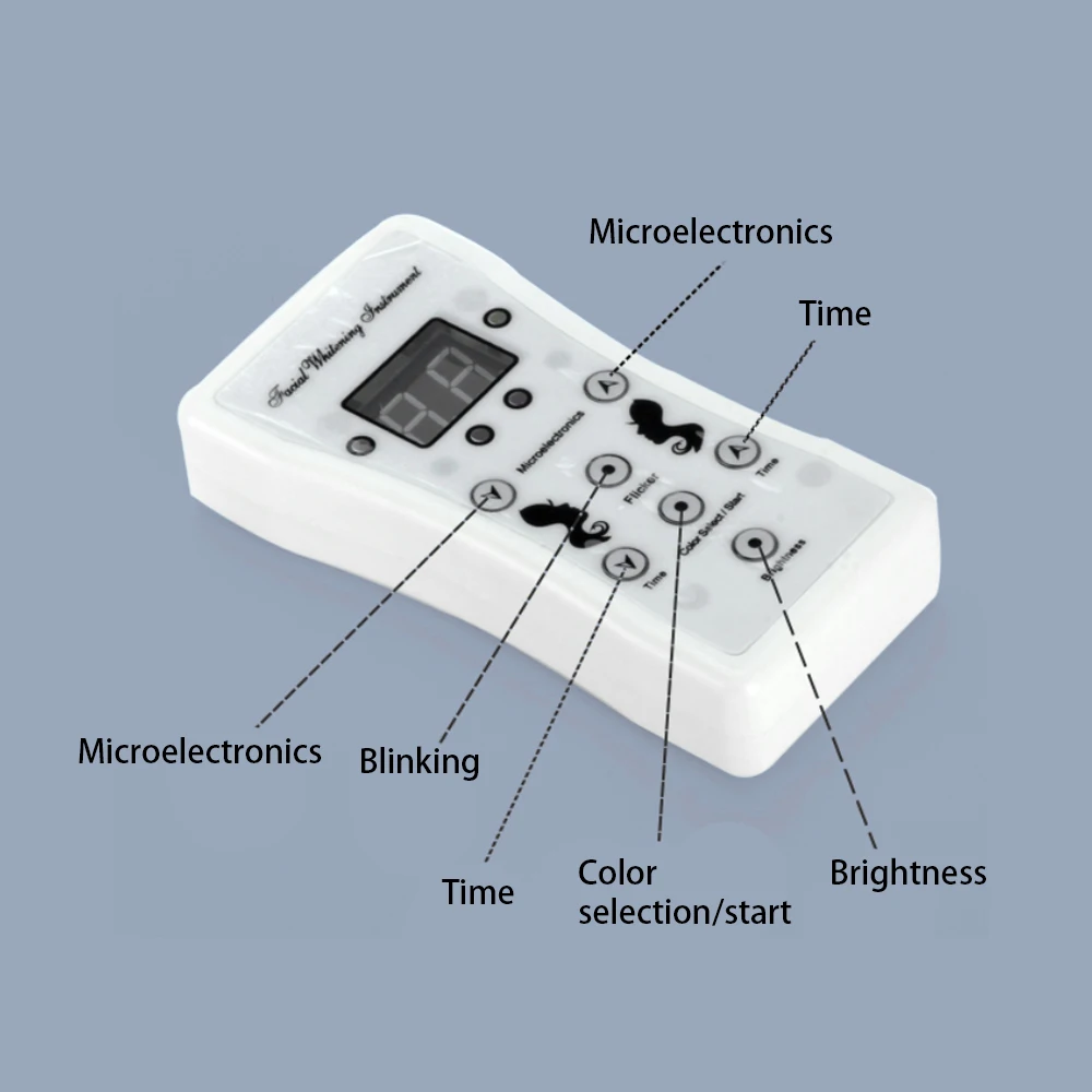 Способ применения 1. Очистите лицо, подождите, пока оно высохнет.2. Подключите разъем USB.1) Нажмите кнопку цвет или выберите/Начните работать, по умолчанию время составляет 30 минут.2) Нажмите кнопку цвета, чтобы выбрать цвета, который 01-07 красный синий зеленый желтый фиолетовый цианин белый.3) Нажмите время и время, чтобы отрегулировать время (0-90 минут при личной необходимости).Используйте не более 25-30 минут, что может привести к нагреву пульта3. Затем Наденьте маску.4. Наконец, подключите питаниеЯркость может выбрать интенсивность света (01-09).