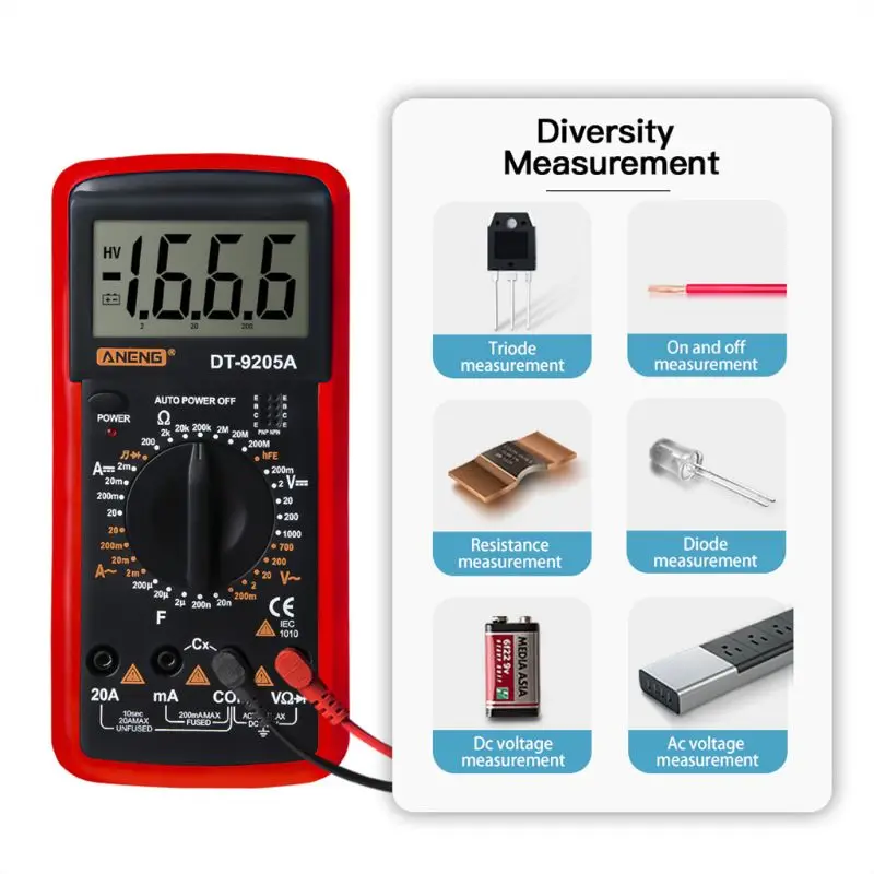 DT9205A hFE AC DC ЖК-дисплей Профессиональный электрический ручной тестер Цифровой мультиметр мультиmetro Амперметр мультитестер