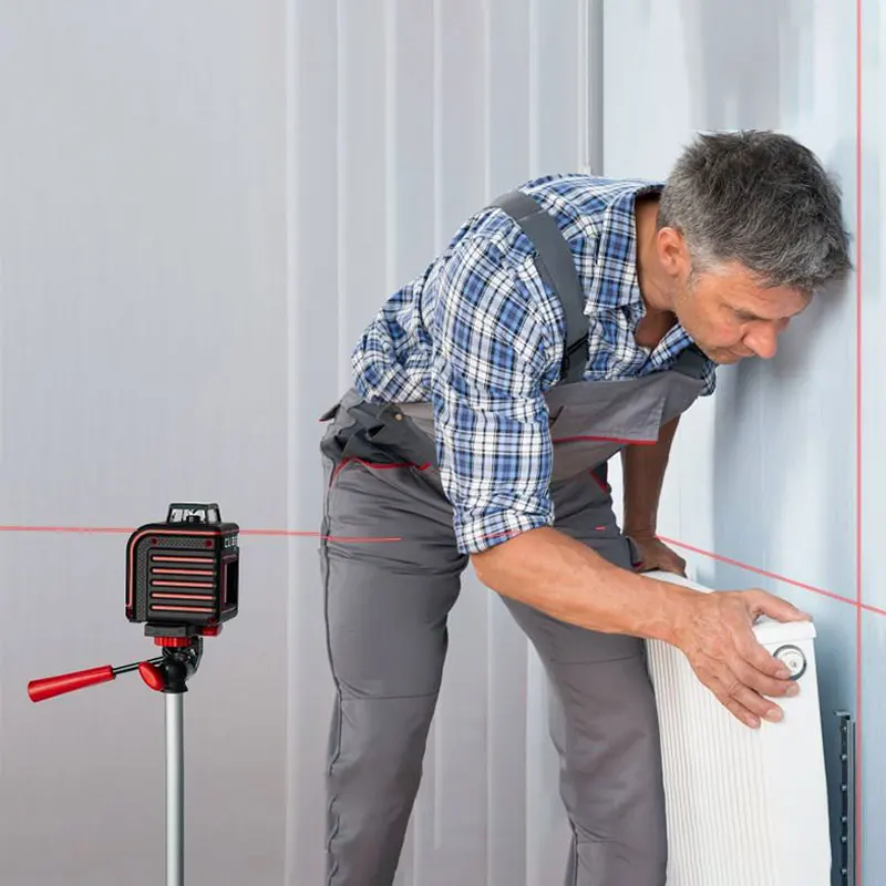 Лазерный уровень с защитой степени IP 54 не боится пыли, грязи и воды. Это позволяет работать с ним при различных погодных условиях или в запыленных помещениях, что бывает нередким явлением во время ремонта. Также он защищен от ударов прочным корпусом с прорезиненной оплеткой, которая смягчает удары при падении с высоты и сохраняет работоспособность прибора.