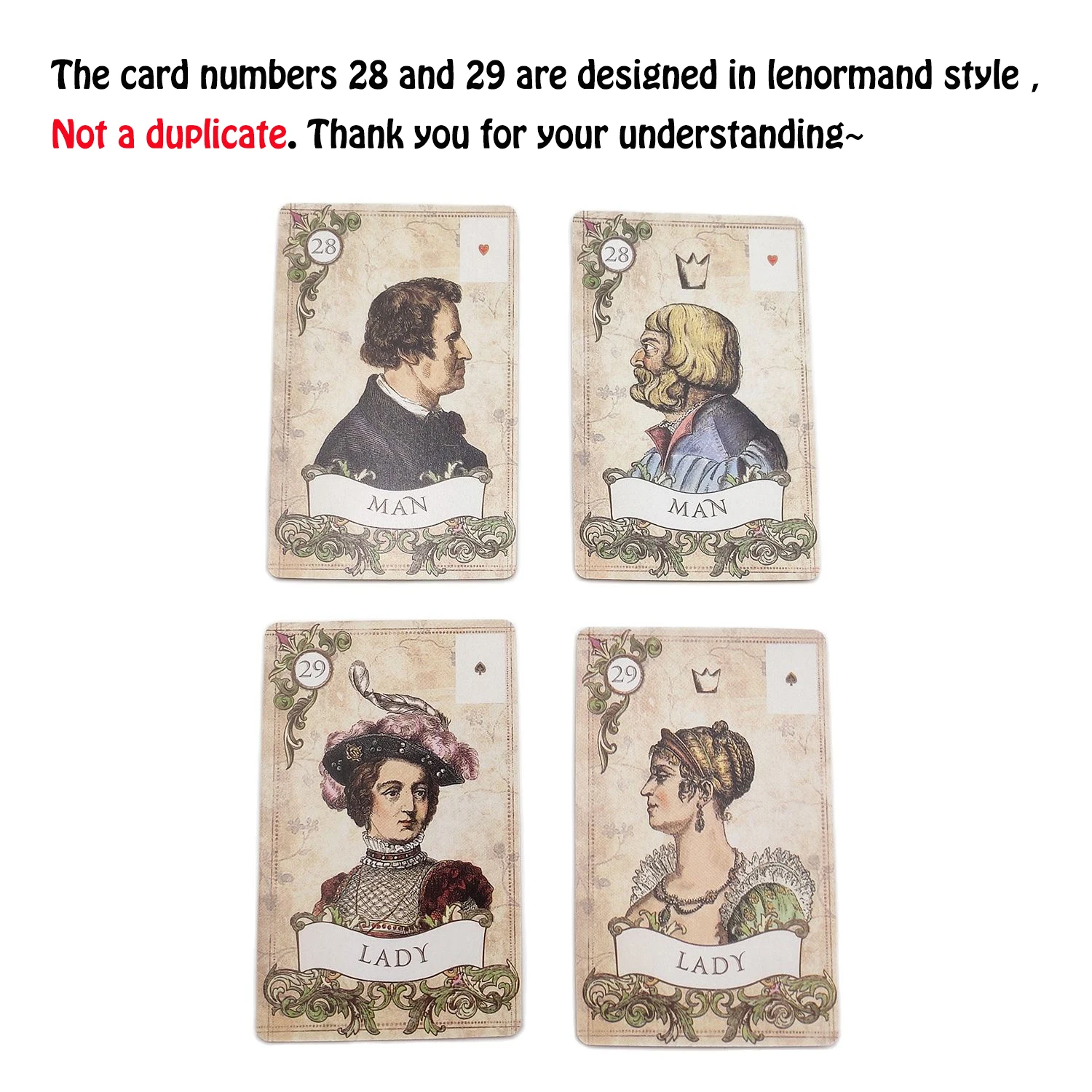 Lenormand в старом стиле состоит из 38 карт Таро (в том числе двух мужских и двух женских карт).