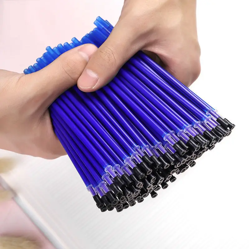 Количество: 50 шт.-Наименование: стираемая ручка-Диаметр пишушей головки: 0,5 мм-Размер пера: стираемая ластиком 3*5,5 см/стержень со стираемыми чернилами 13 см/стираемая ручка 14,5 см-Цвет чернил: синий/черный-Материал: пластик-Плавное написание и отсутствие сухих пятен