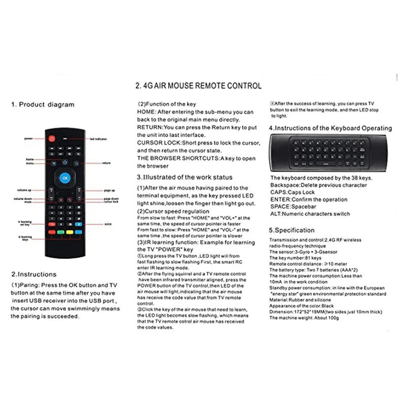 Функция ИК-обучения: ИК-кнопки на пульте дистанционного управления для Android box, телеприставка и телевизор (для MX3-M)