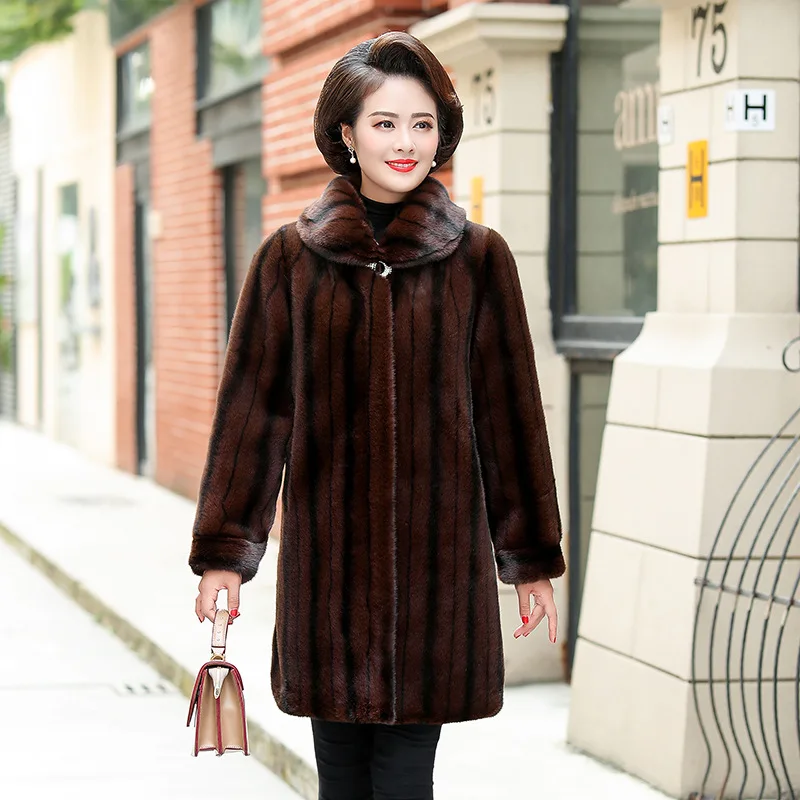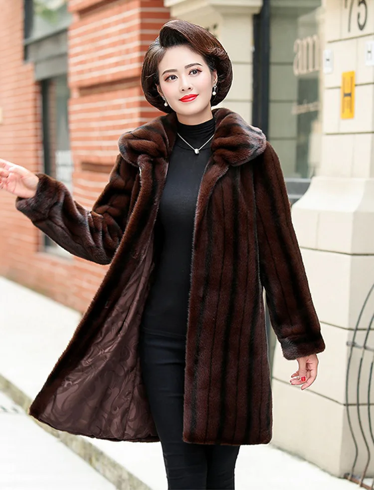 Женское пальто с искусственным молочным мехом, пальто с искусственным мехом средней длины для женщин среднего и пожилого возраста, утолщенное теплое пальто 6XL 7XL 8XL 9XL XF943