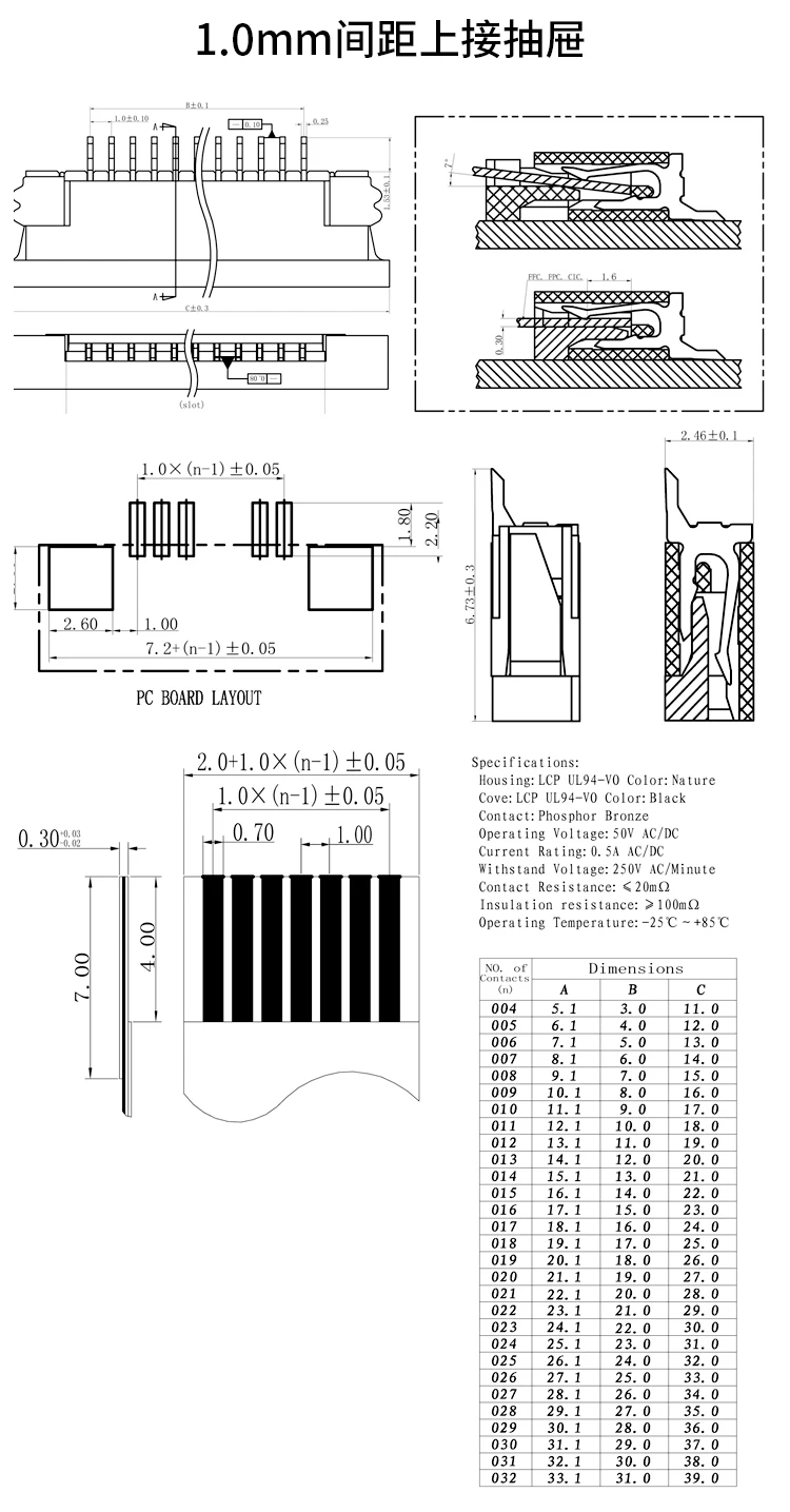 10 шт. 1,0 1 мм разъем FPC FFC подключить выше 4/6/8/10/12/14/16/18/20/24/26/30/32 Pin плоский кабель Разъем