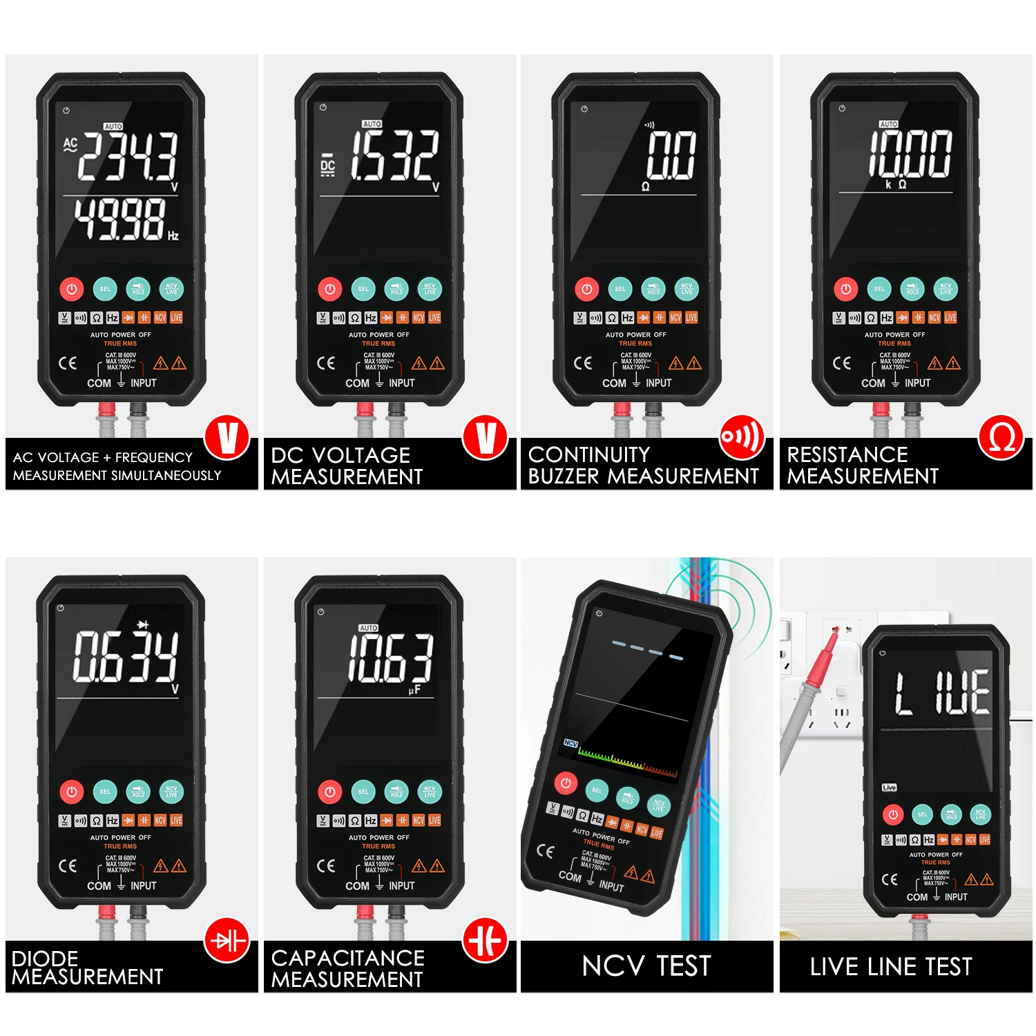 4 режима измерения: автоматическое измерение (напряжение постоянного тока/переменного тока, сопротивление и непрерывность могут быть измерены), тест NCV, испытание в режиме реального времени и тест на диод.