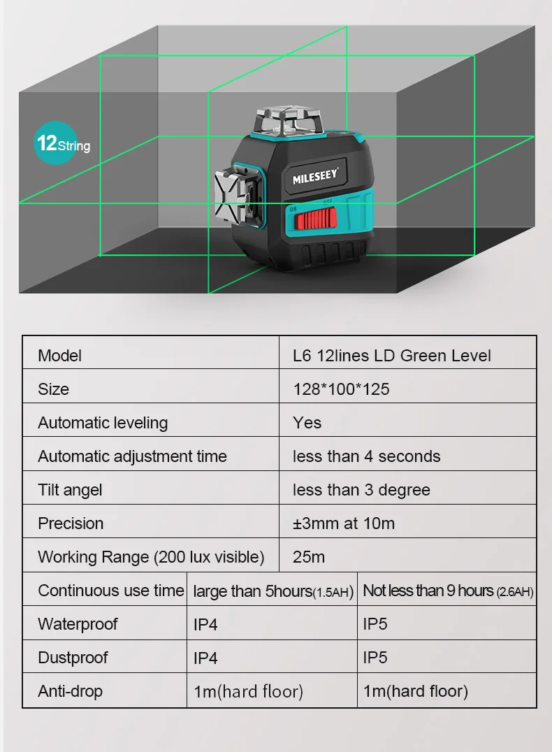 MiLESEEY 360 12 линий 3D самонивелирующийся зеленый лазерный уровень профессиональное лазерное выравнивающее устройство Горизонтальные и вертикальные перекрестные конические лазерные инструменты