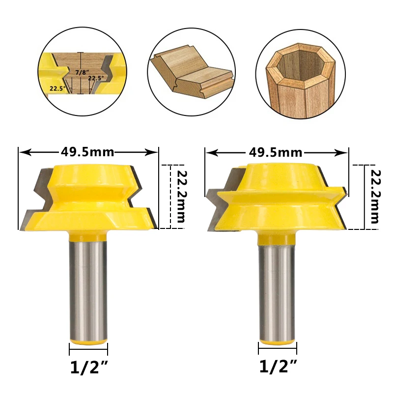 Hampton Концевая фреза для создания соединений в Ус с 22,5 градусов клей столярных для создания выпуклой филенки 12,7 мм хвостовик Концевая фреза по дереву для соединения шип-паз резак