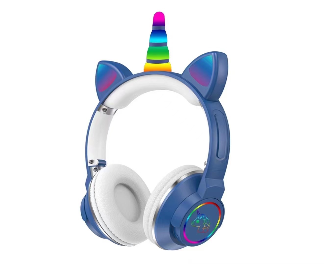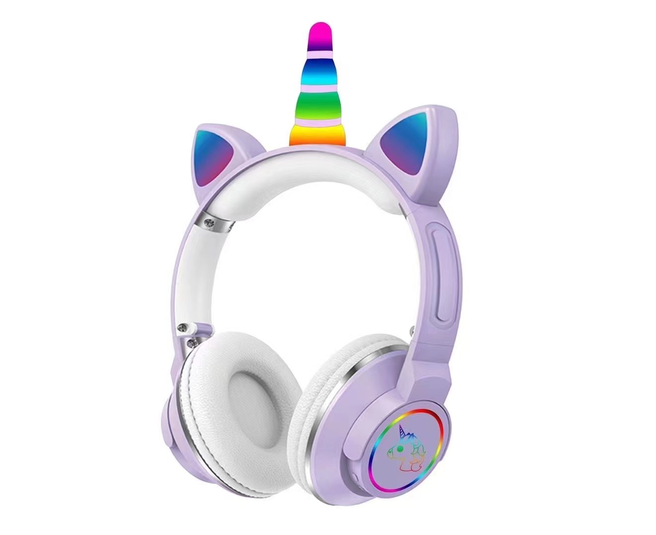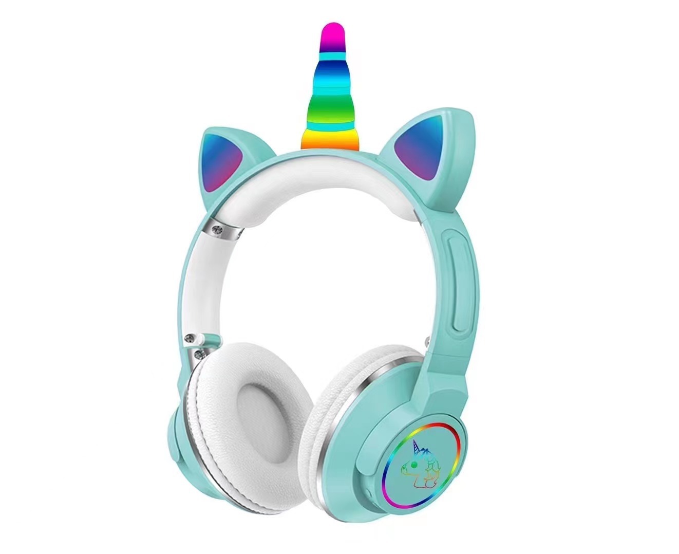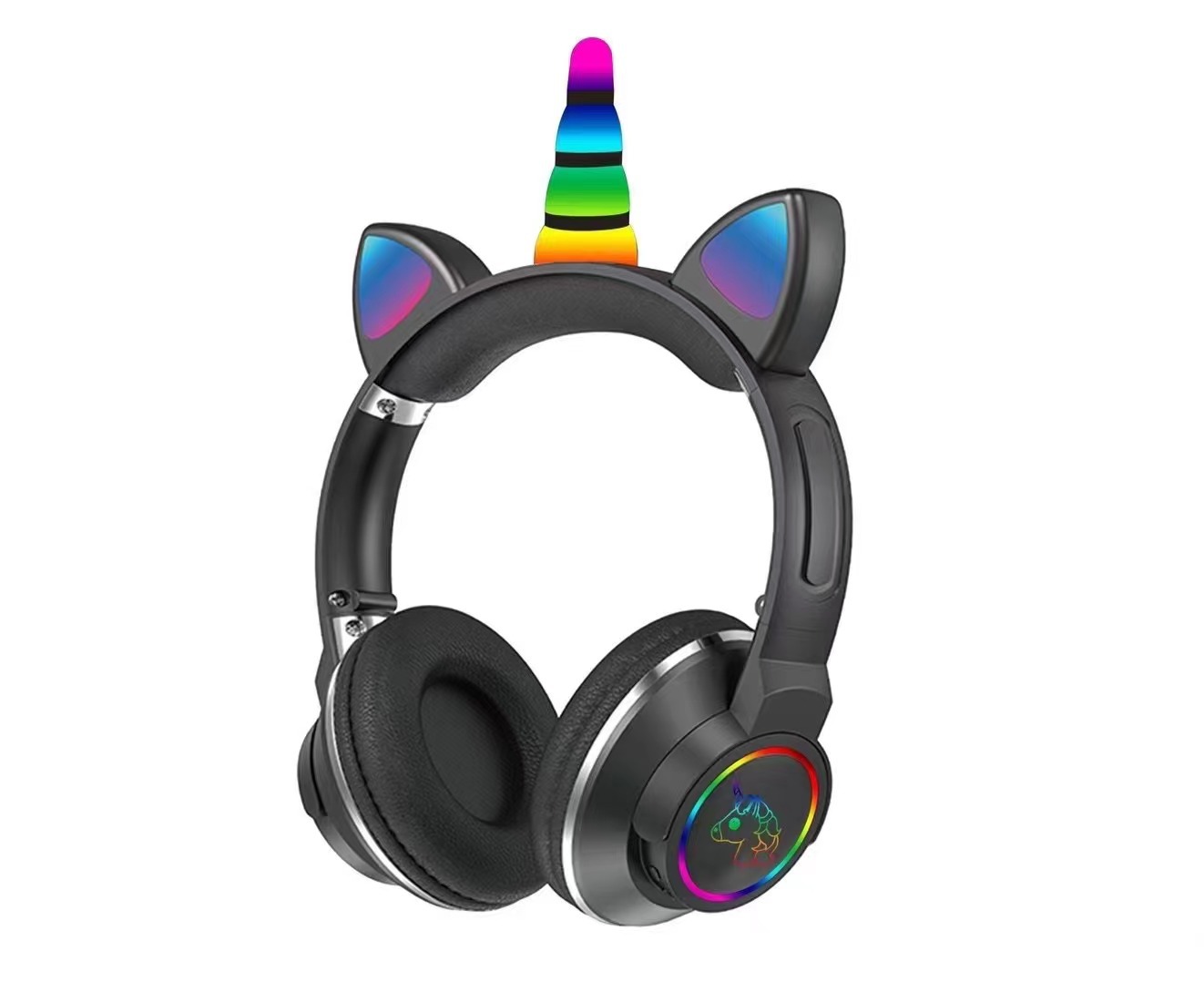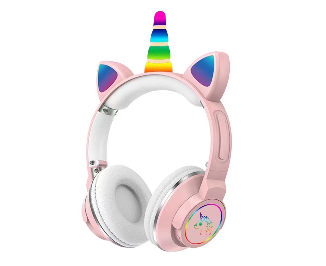 СВЕТОДИОДНЫЙ беспроводной шлем со вспышкой для маленьких девочек, наушники с милыми кошачьими ушками, Bluetooth наушники с единорогом, мультяшная геймерская гарнитура, подарок с микрофоном