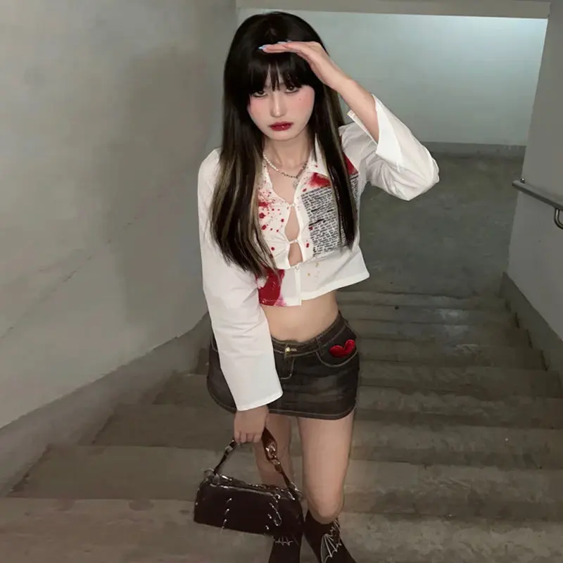 Свободная Повседневная Джинсовая блузка топы однобортные черные/армейские