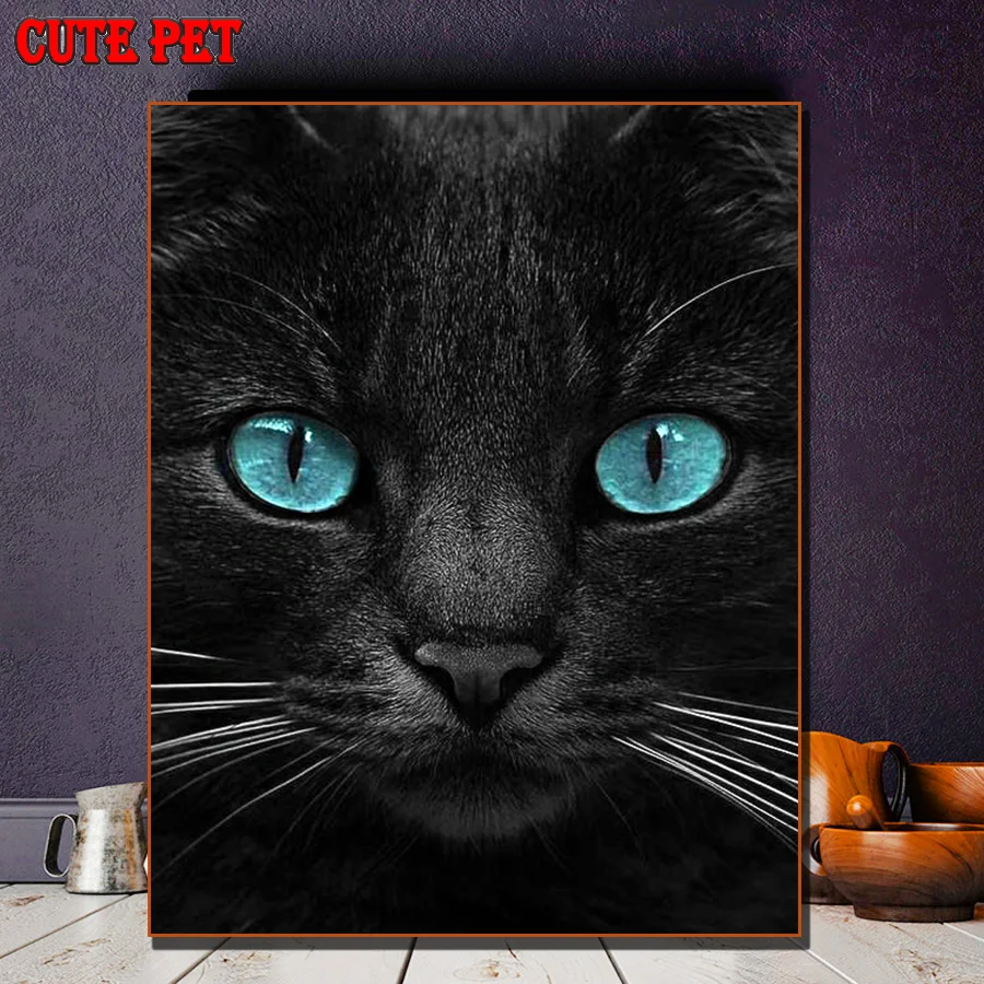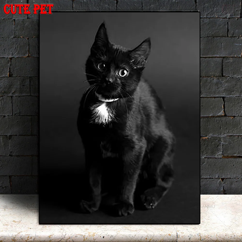 Милое домашнее животное Diy Алмазная вышивка черный котенок Декор Алмазная картина Картина животное кошка мозаичная картина из страз Бисероплетение хобби