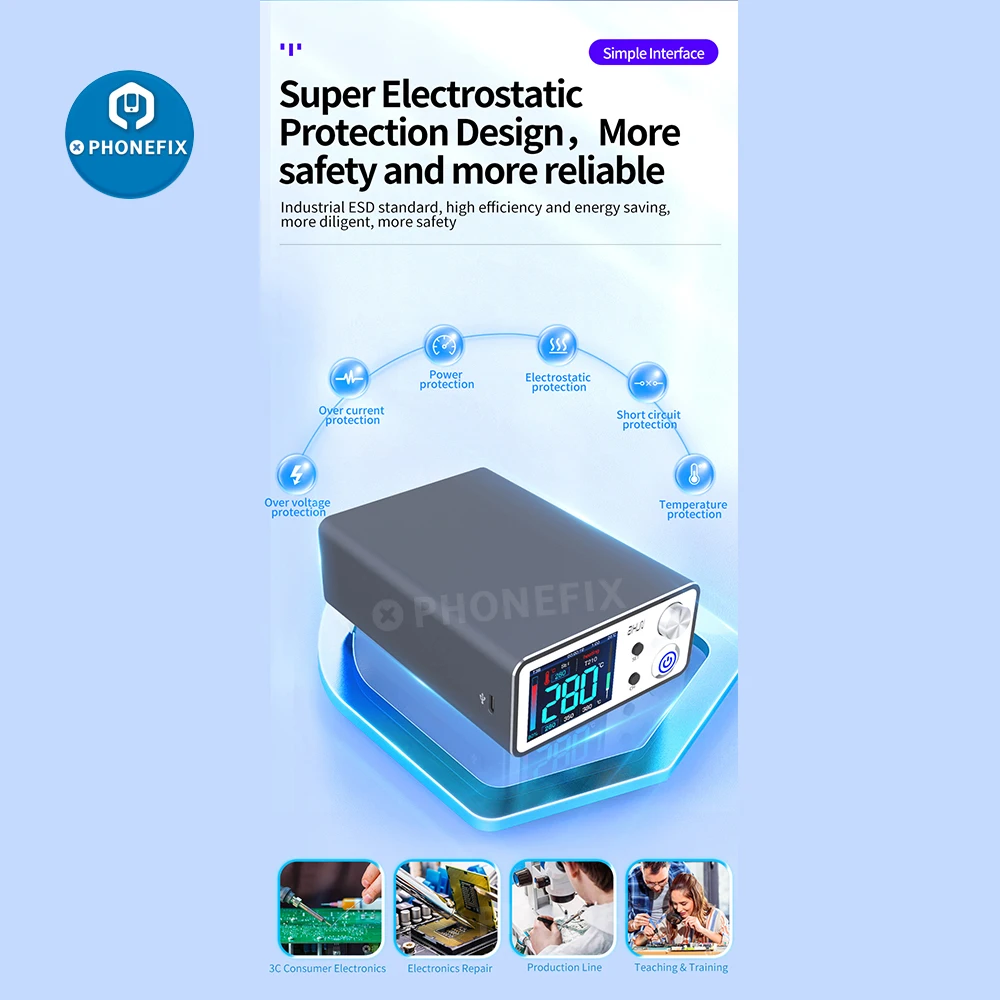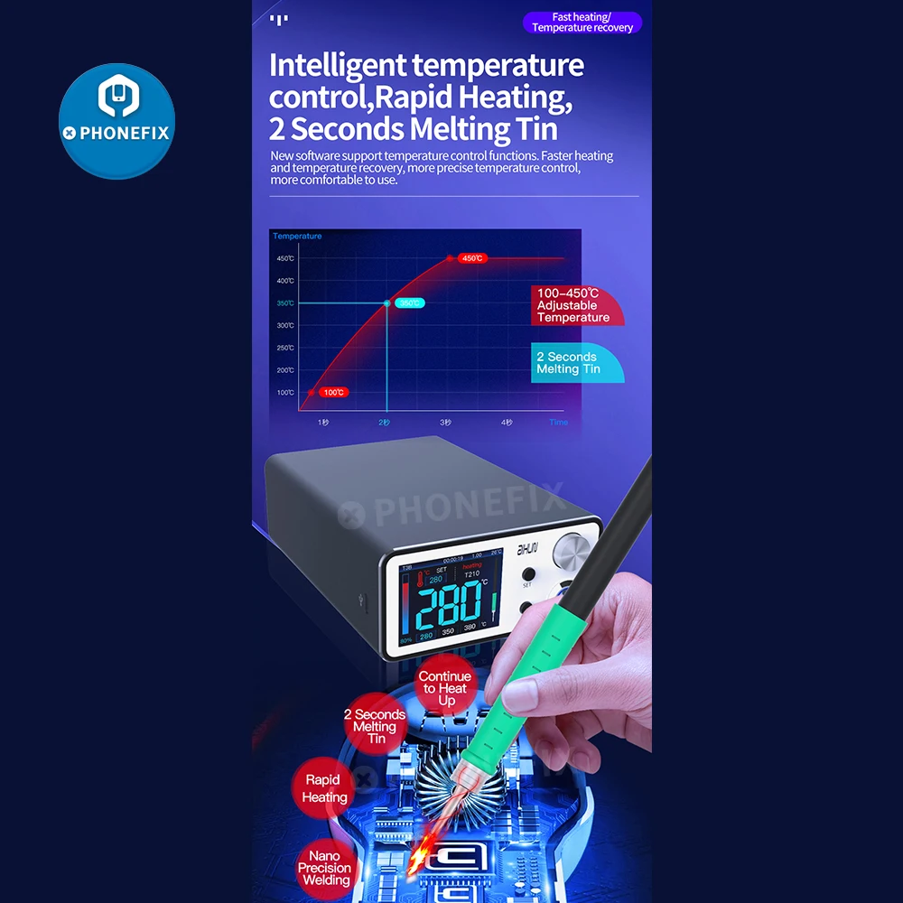 2. Принять 200 Вт Супер источник питания, только занимает 4 секунды для паяльника для повышения до 380 ℃.