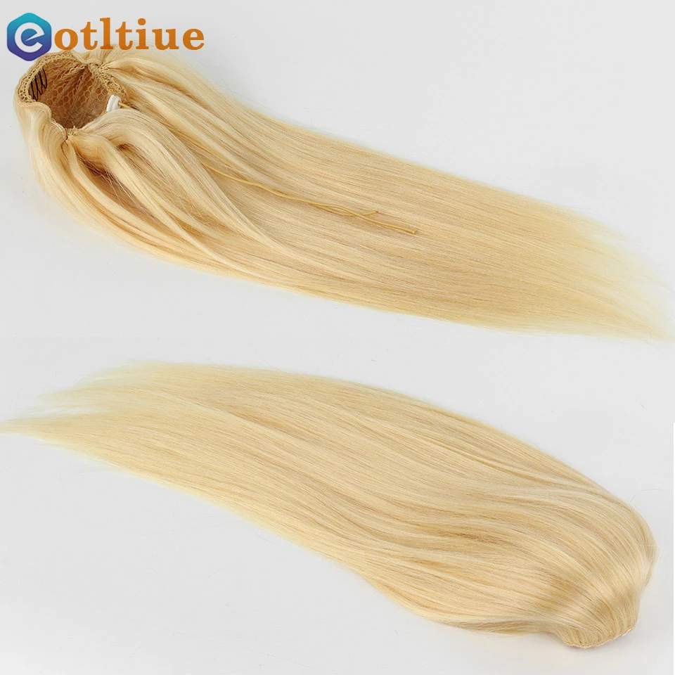 Eotltiue 613 блонд цвет прямой шнурок конский хвост человеческие волосы на заколках для наращивания бразильские волосы Remy для женщин 18 20 дюймов