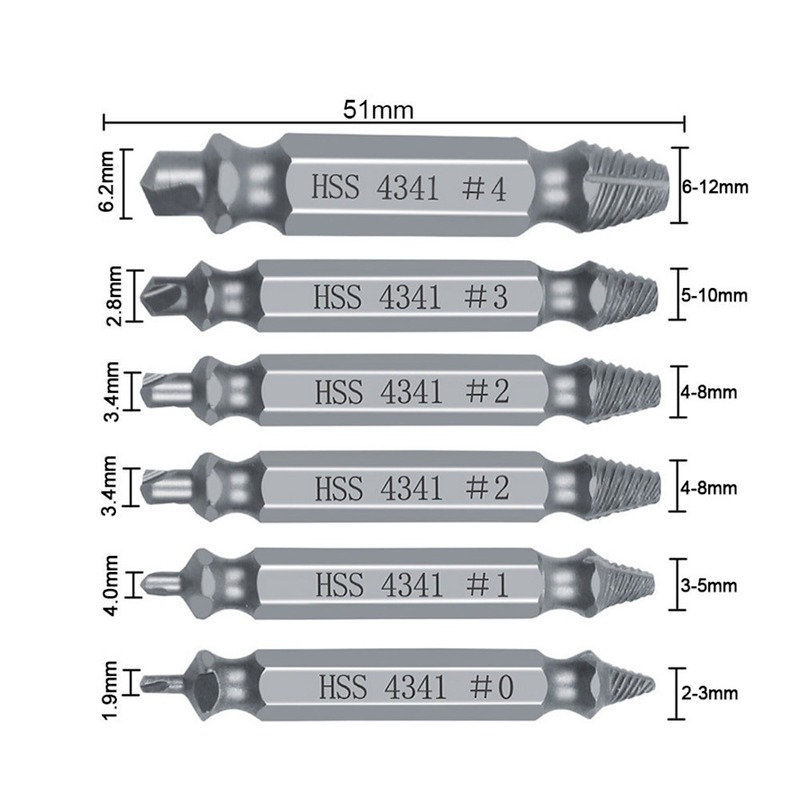 * Набор экстракторов винтов 6 шт. Работает с любым сверлом и любым размером винта или болтом,