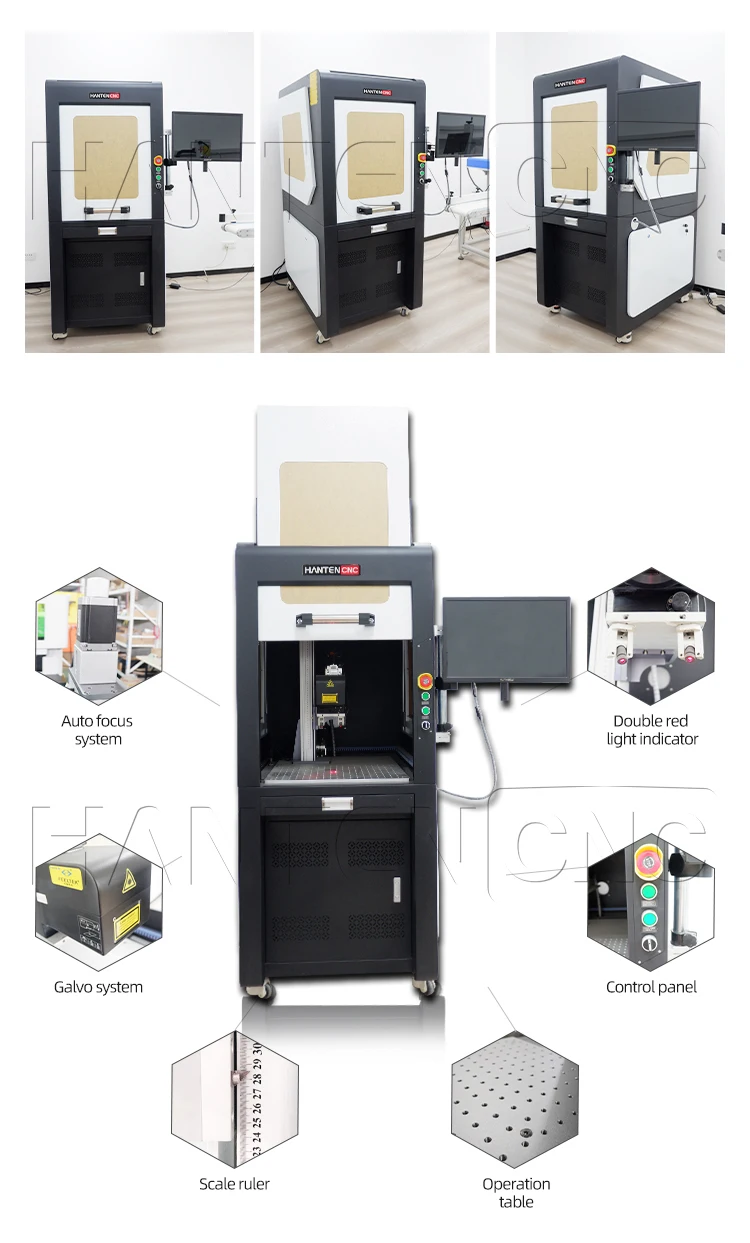 Brand NameHANTENCNCModel NumberHTF-MFOriginMainland ChinaCertificationCECertificationceMeasurement unitset/setsEach pack1Laser Power20W/30W/50WGalvanometer HeadSINOLaser TypeFiber LaserControl SoftwareEZCAD2Lifting Pillar500mm(customize)Marking Area100*100mm-300*300mm(Option)Laser Wavelength1064nmField LensHansel/OPEXLaser SourceRAYCUS/MAX/JPTControl System BrandJCZCooling SystemAir CoolingWorking Voltage0.5KW/AC220V/50Hz(option)Output laser power20w~50WMinimum character0.1mmMinimum line width0.01mmRepeatability accuracy0.003mmResolution0.001mmMarking speed0-7000mm/sMachine's advantagessafety, popularApplicationMarking on metal, copper, stainless steel, hard plastic, animal ear tags, metal tags, dog tags and so onWarranty2 years for whole machineAfter Warranty ServiceVideo technical support, Online supportOption65/69/80 rotary axis, cutting table, conveyor belt and other customized partsGross weight350kgOperating SystemFELLTEK
