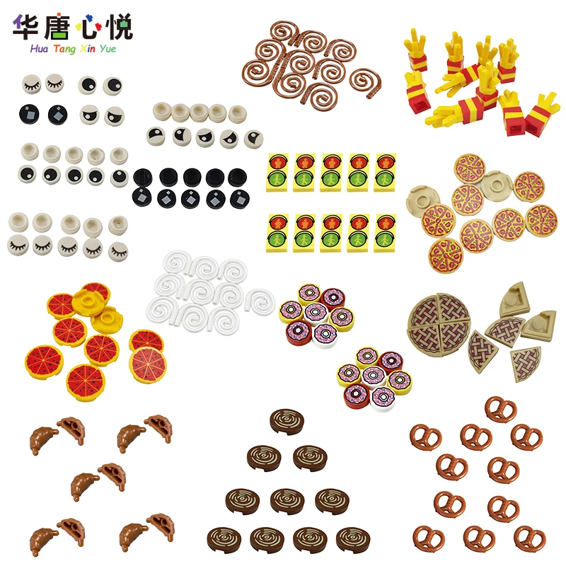 City Foods Plants Accessories Parts Series Toys For Kids Building Blocks Educational Pizza White Round Eye City Compatible Gift