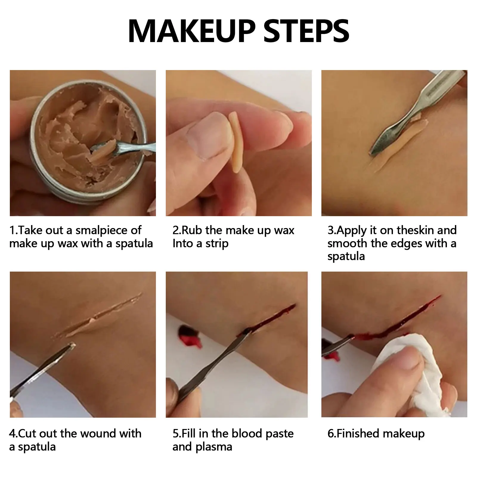 Что вы получаете: 12 видов цветов палитра красок для лица, 10 кистей для красок для лица разных размеров, шпатель, коагулированный гель для крови, черная губка, палитра, наклейки, шрамовый воск. Этот полный набор наборов для макияжа со спецэффектами сделает вас центром внимания праздника. Можно использовать для изготовления поддельных бровей, Носов или порезов, стрельбы, синяков, ожогов и сломанных конечностей.