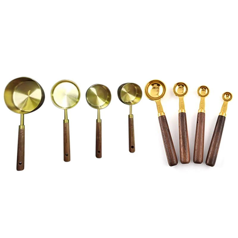 Акция! Мерные стаканы ложки набор деревянная ручка из нержавеющей стали металлические измерительные ложки для выпечки набор кухонный измерительный инструмент