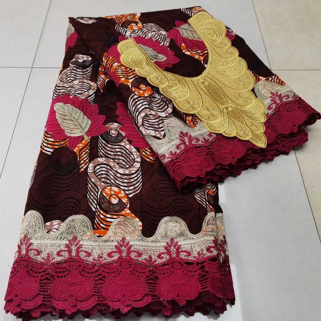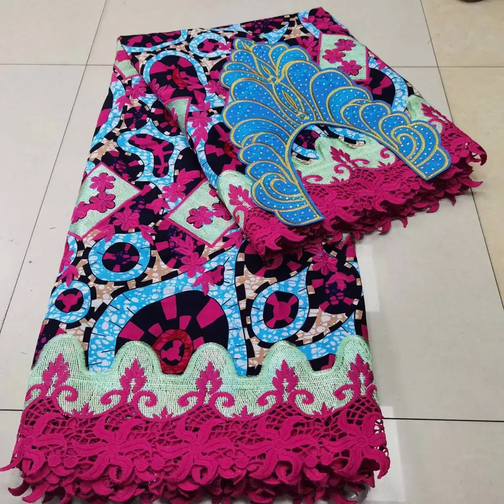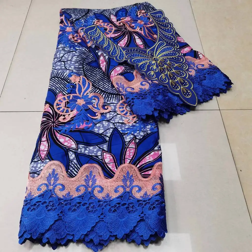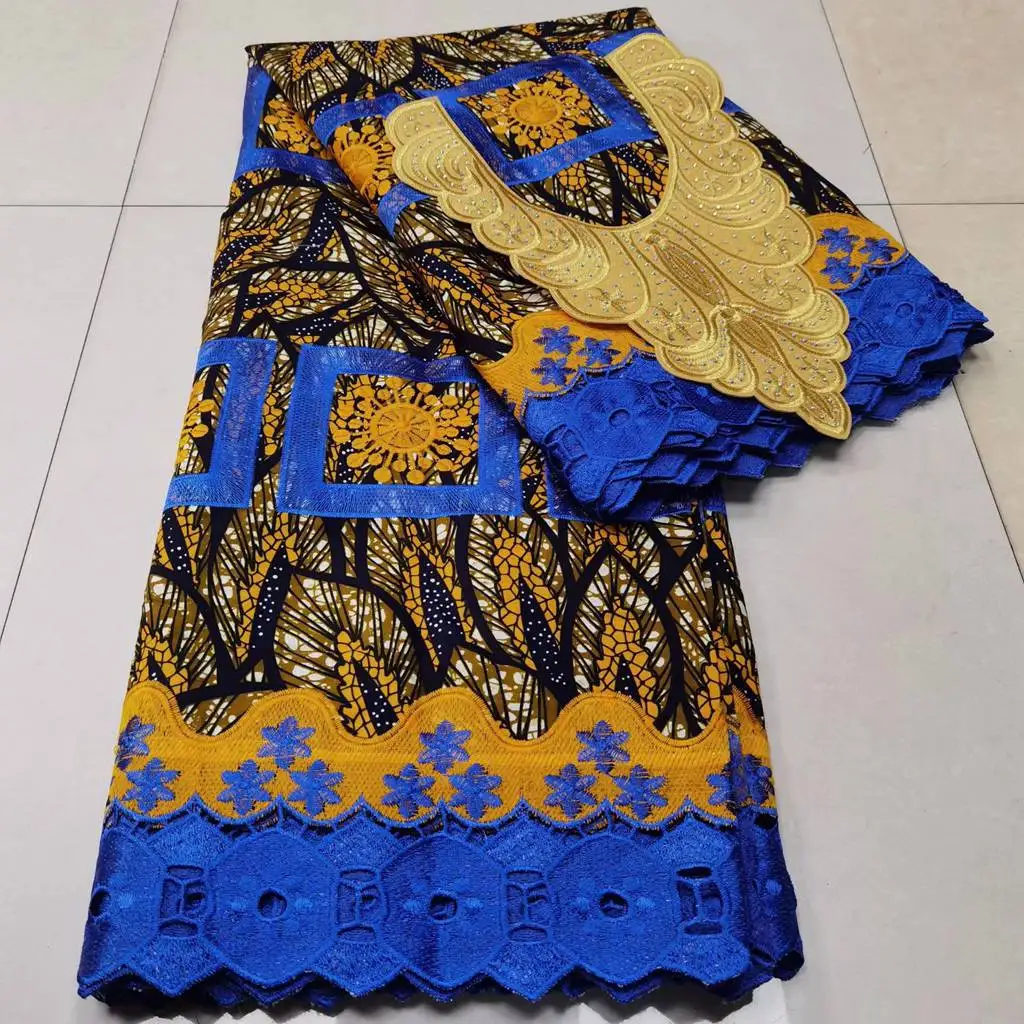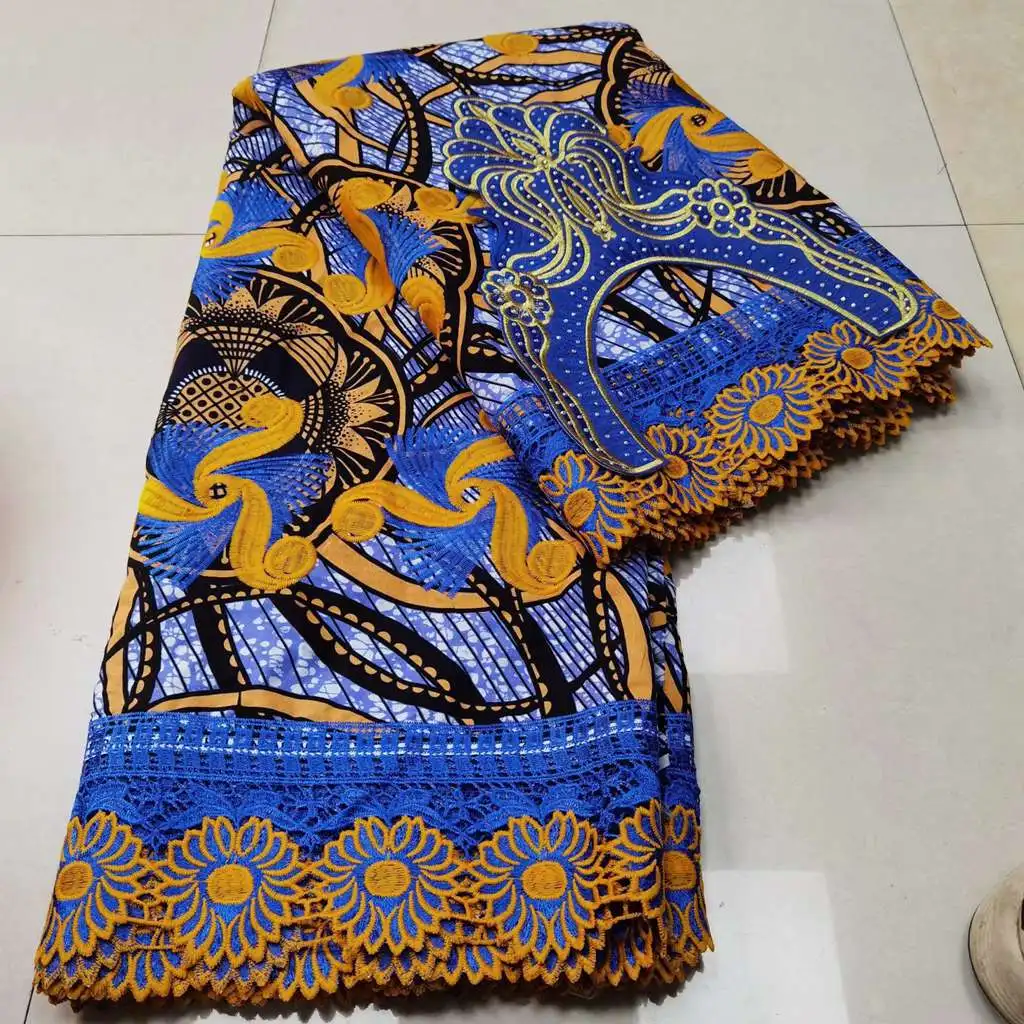 6 ярдов вышивка шеи Анкара Африканский воск печать кружева ткани хлопок Tissu Африканский французский водорастворимый парча Сшить Платье Материал