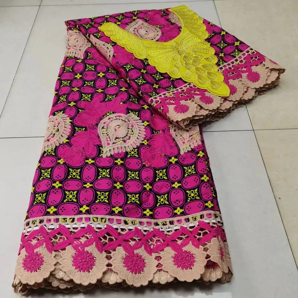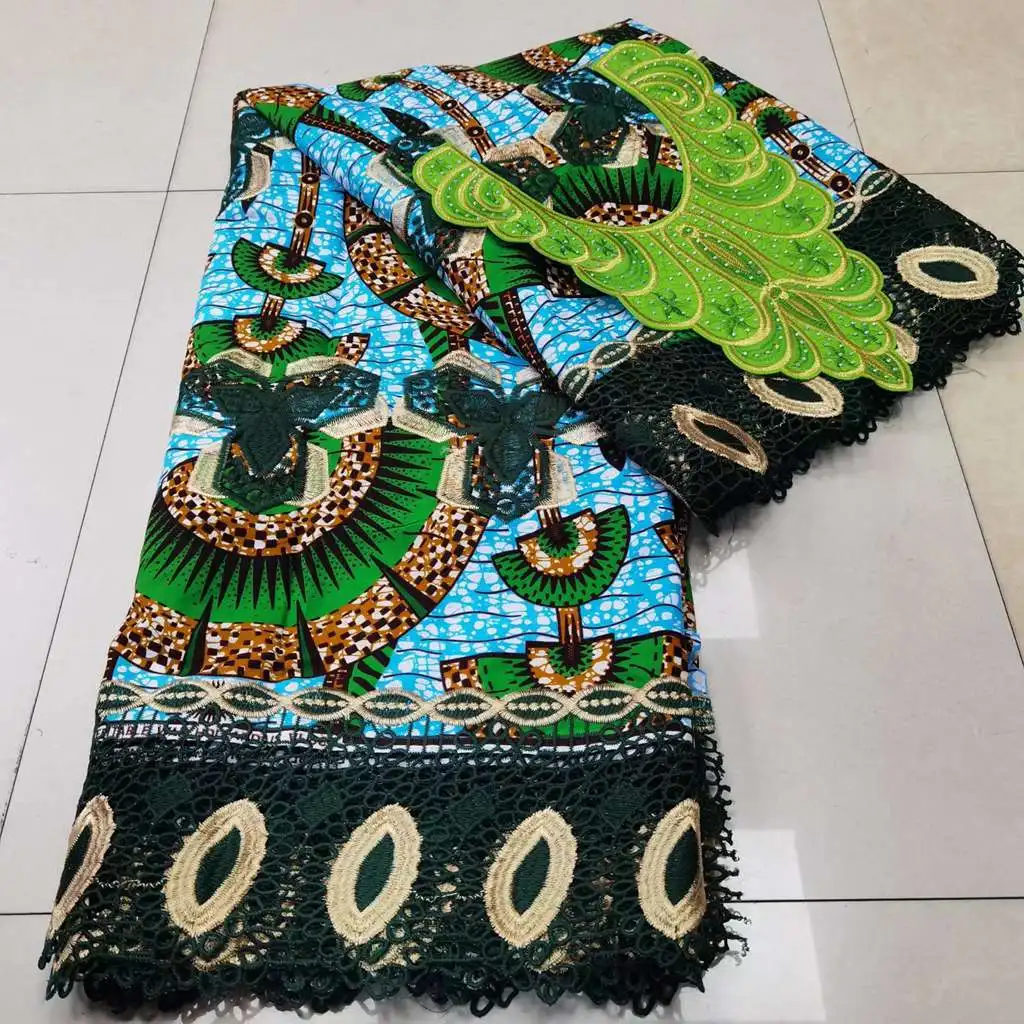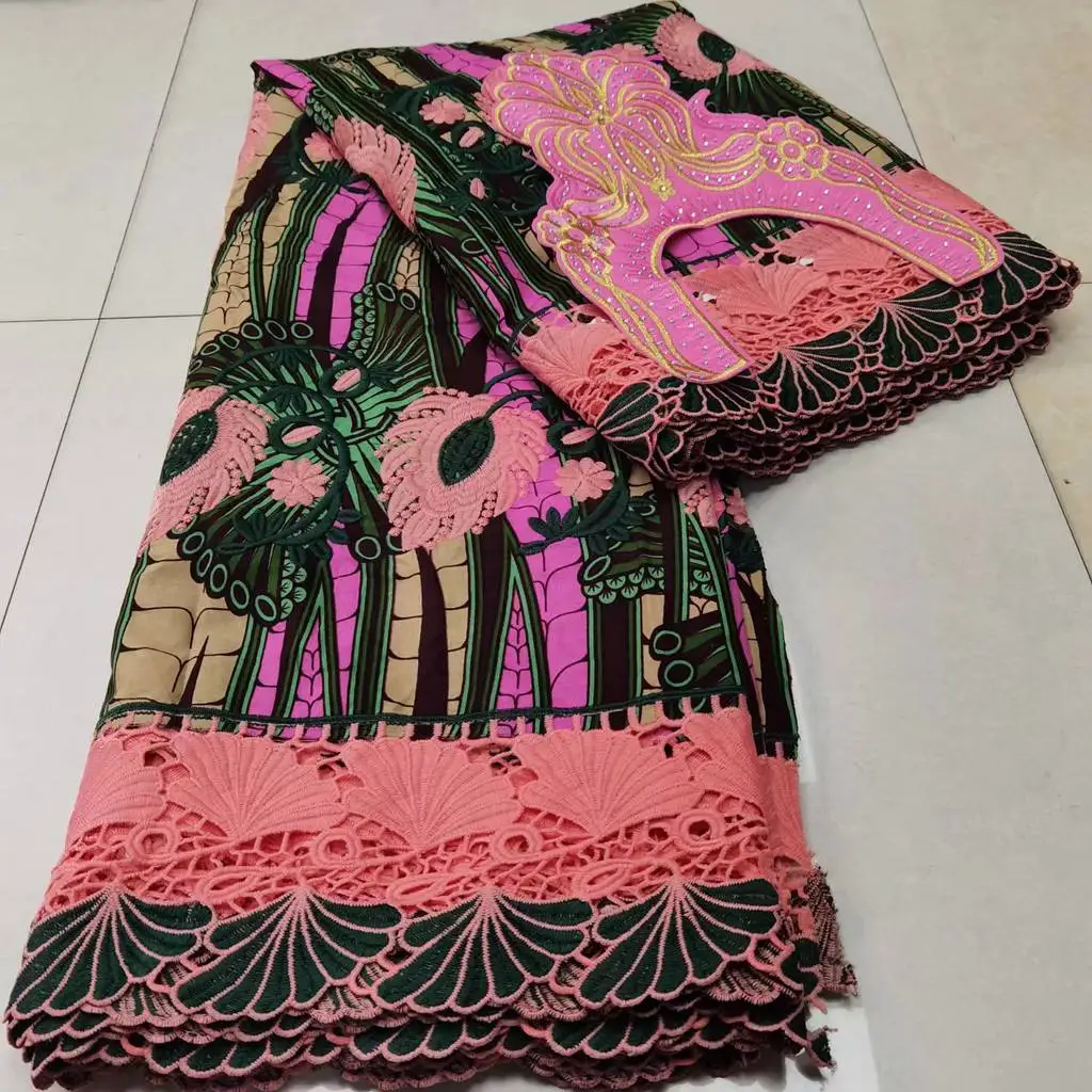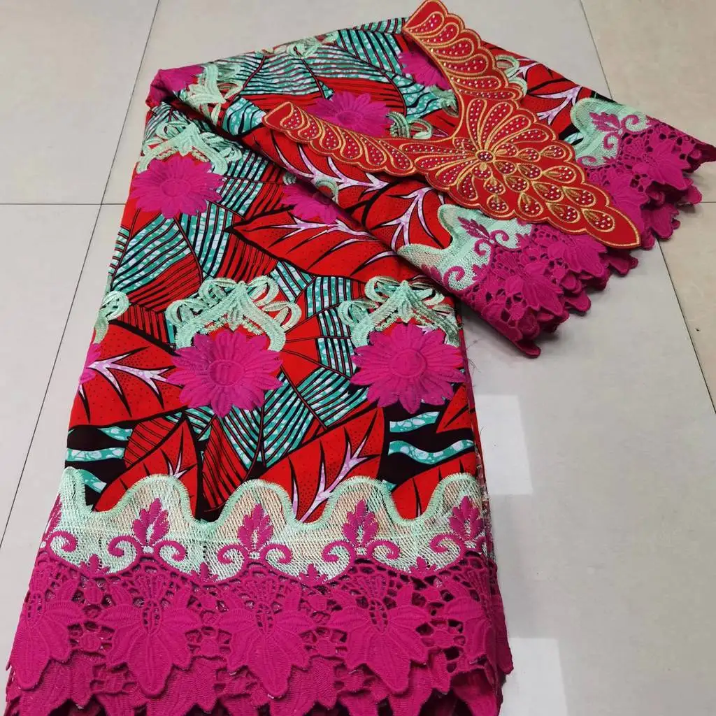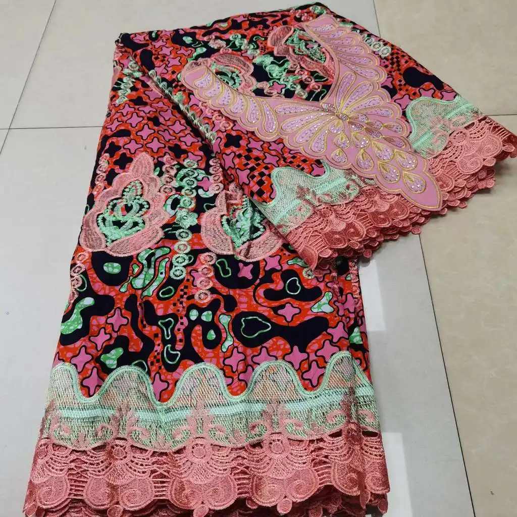 6 ярдов вышивка шеи Анкара Африканский воск печать кружева ткани хлопок Tissu Африканский французский водорастворимый парча Сшить Платье Материал